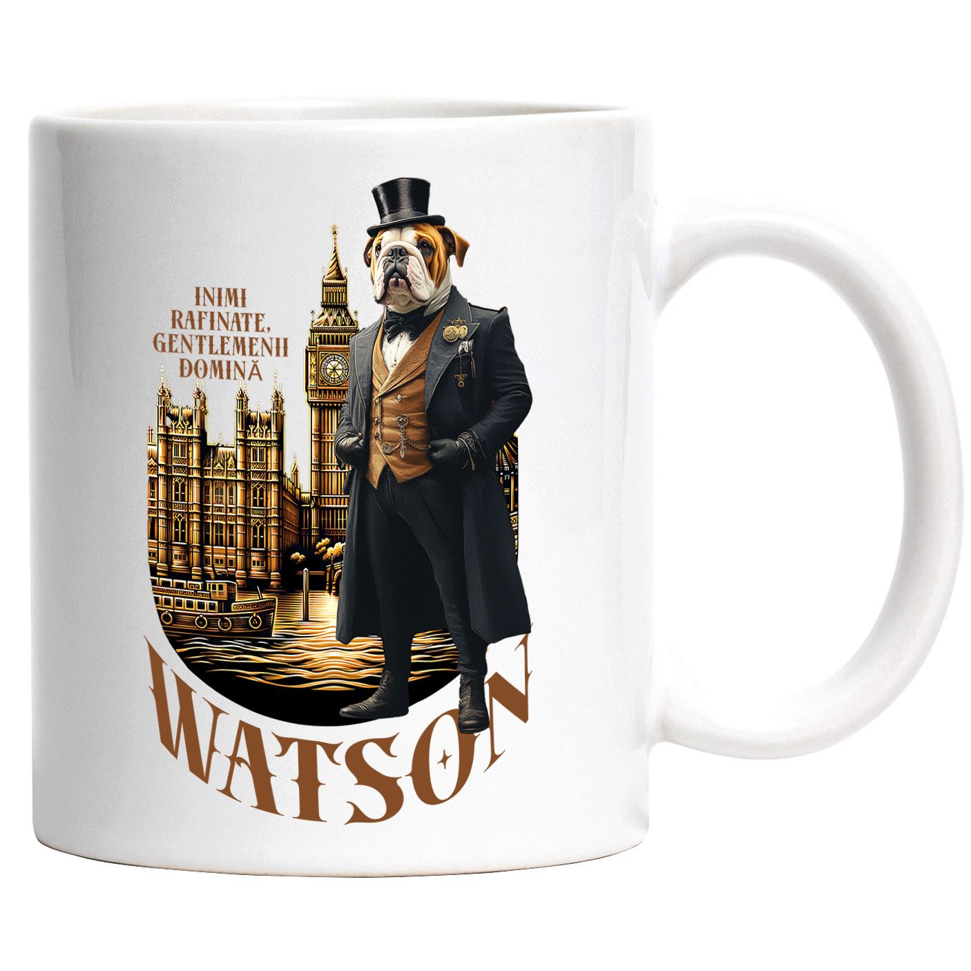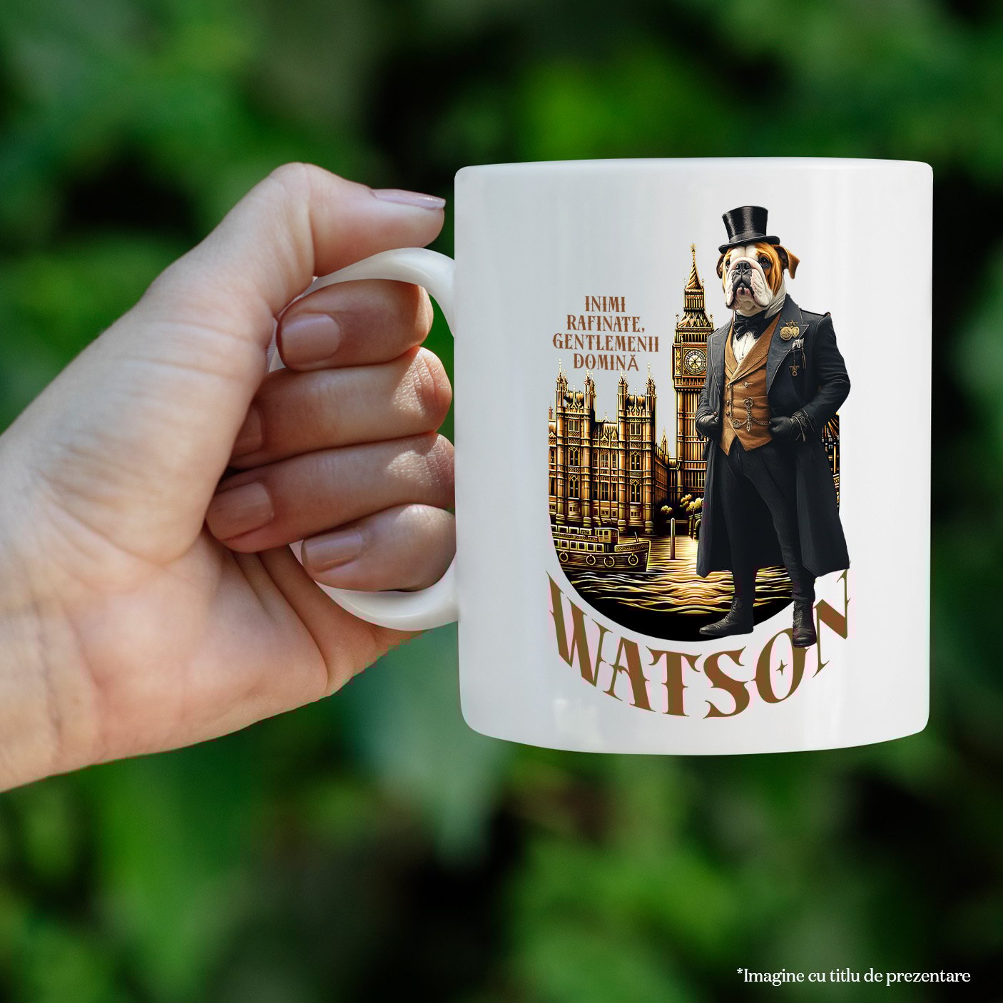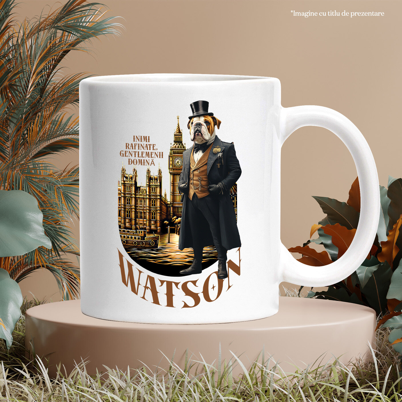 Cana cu Animal in Costumul Regal din Londra, Peronalizata cu Numele si Poza Animalului Tau cu Maner Alb