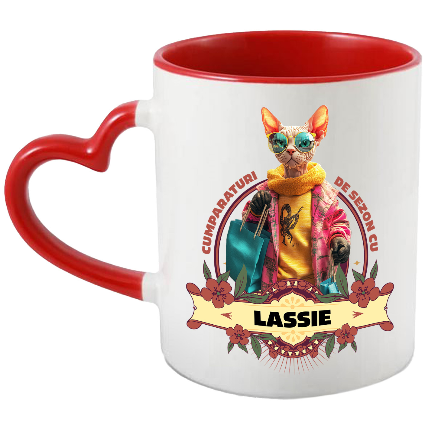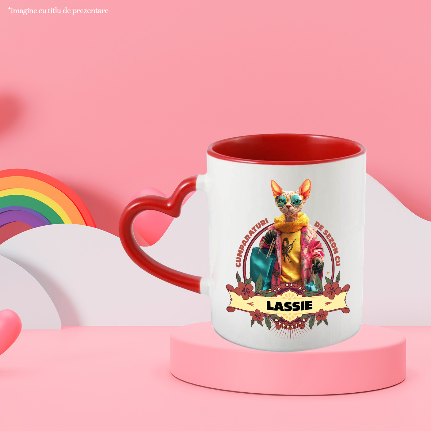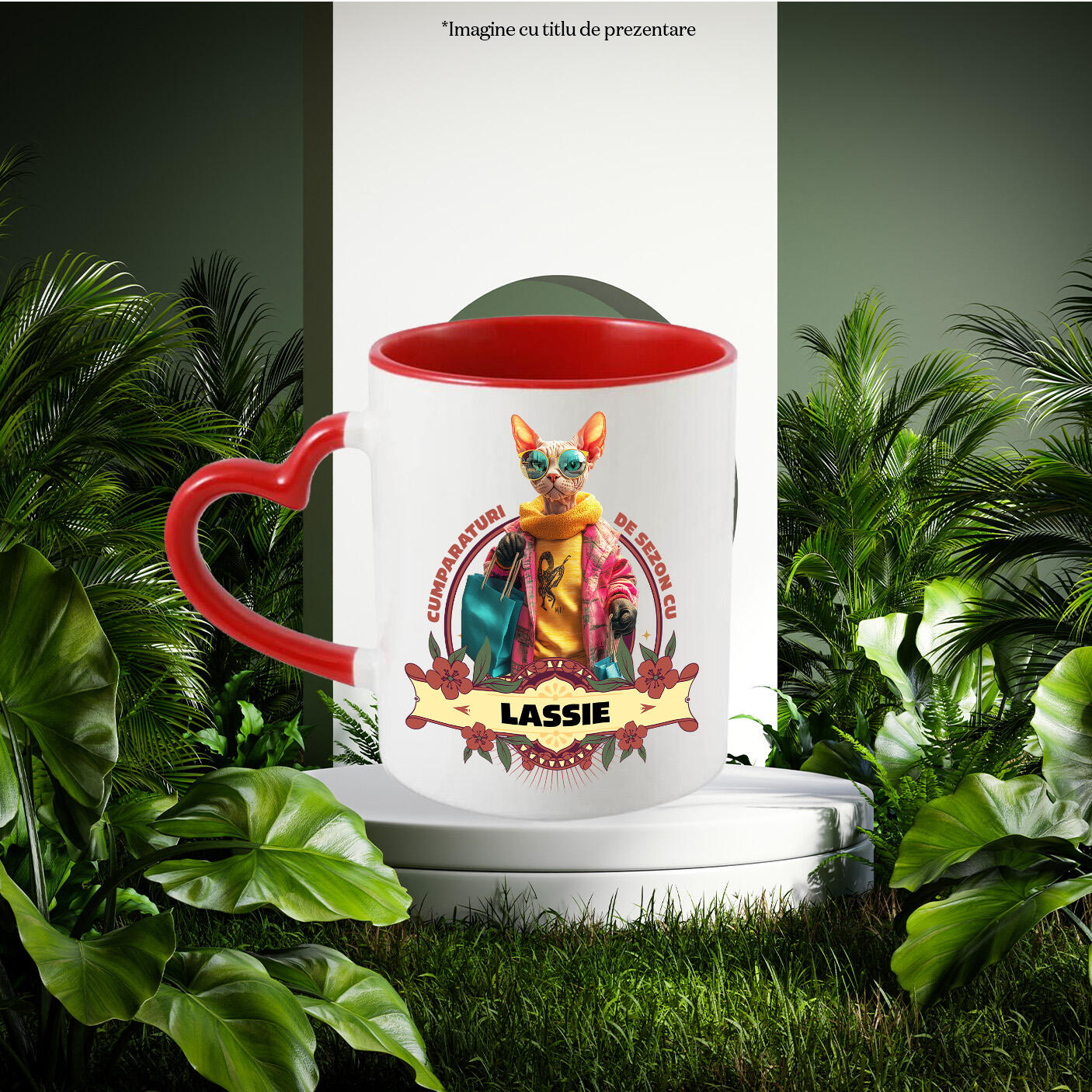Cana cu Animal La Cumparaturi, Moda, Fashion, Peronalizata cu Numele si Poza Animalului Tau cu Maner Inima Rosie