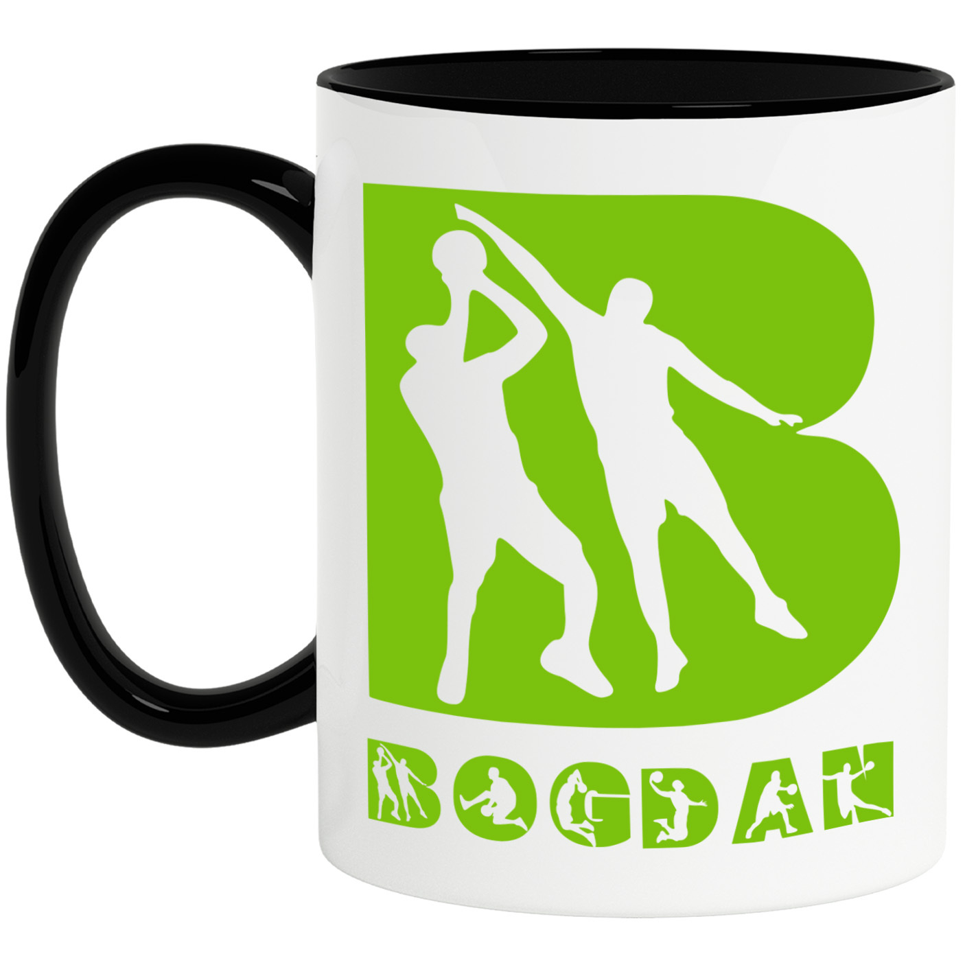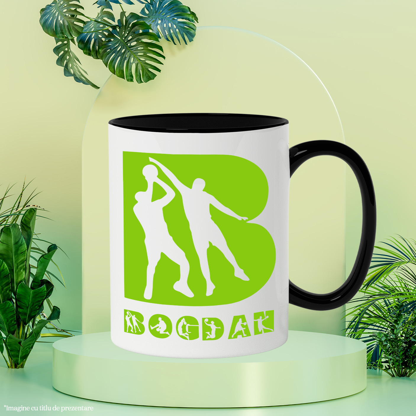 Cana Iubitorii De Bascketball, Minge, Siluete Sportivi, Text Nume Personalizat, Copii, Culoare Verde, Cu Litera, 330ML, Ceramica, Cu Maner si Interior Negru