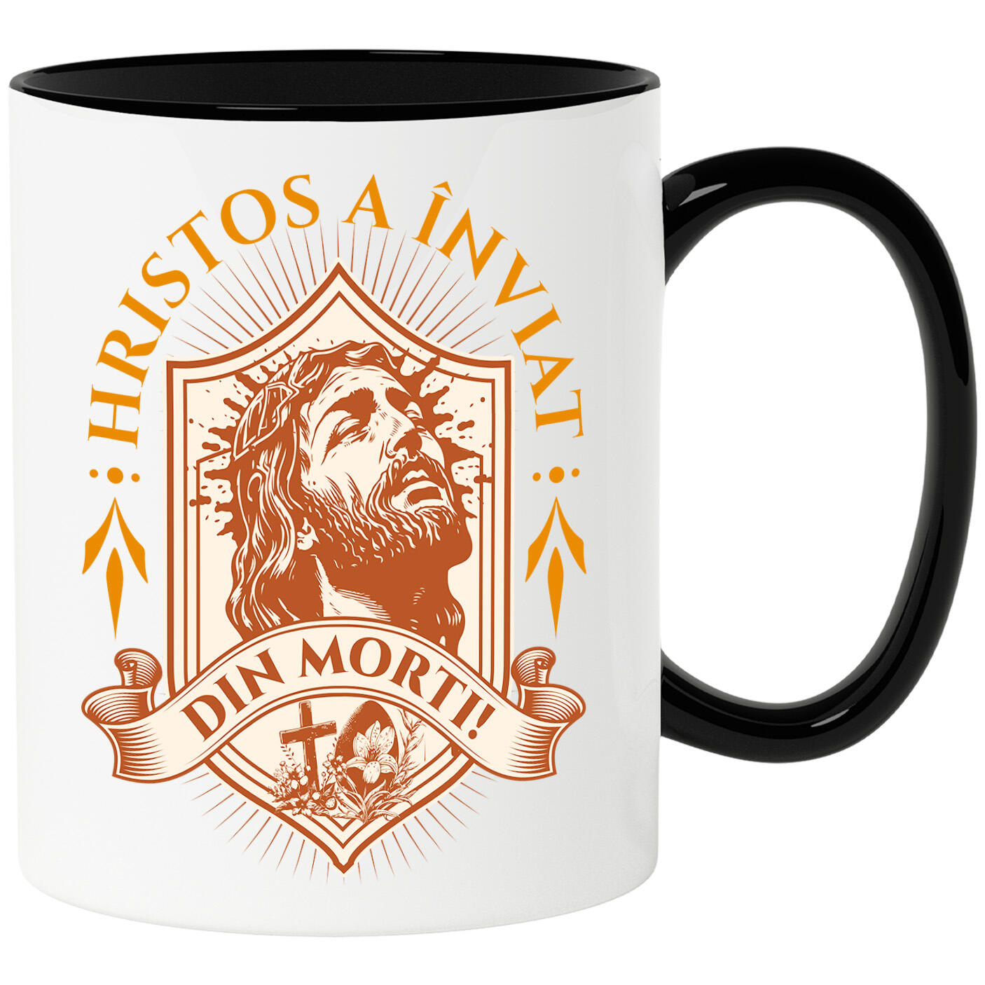 Cana Personalizata cu Chip Iisus Hristos Cu Barba Si Par Lung , Paste Sarbatori Pascale, Ceramica, 330ML, cu Maner Negru