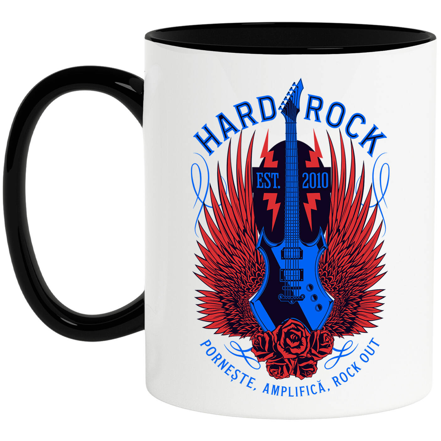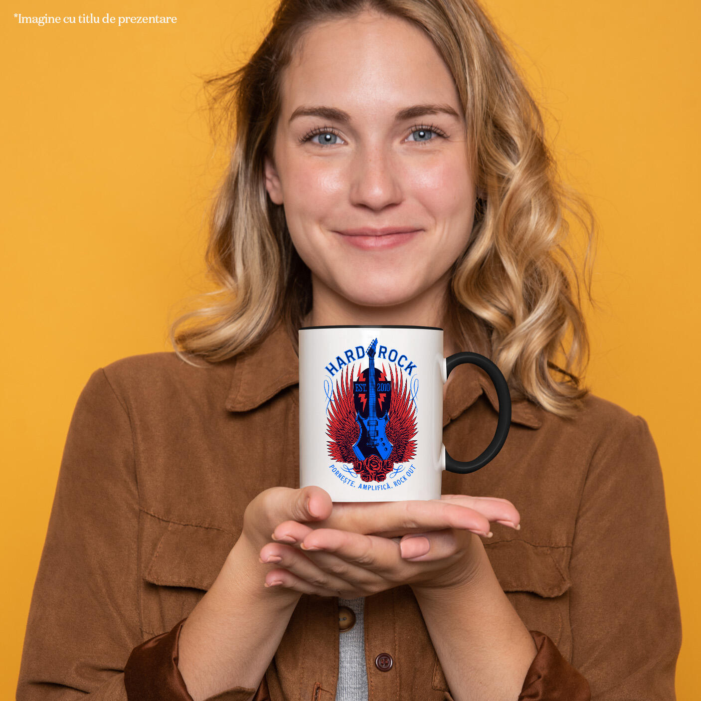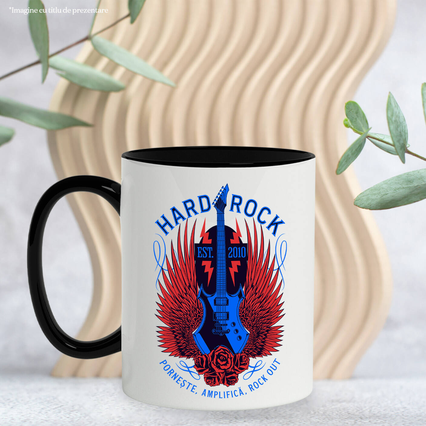 Cana Personalizata cu Chitara Rock&Roll Aripi De Inger Trandafiri Rosii , Ceramica, 330ML, cu Maner Negru