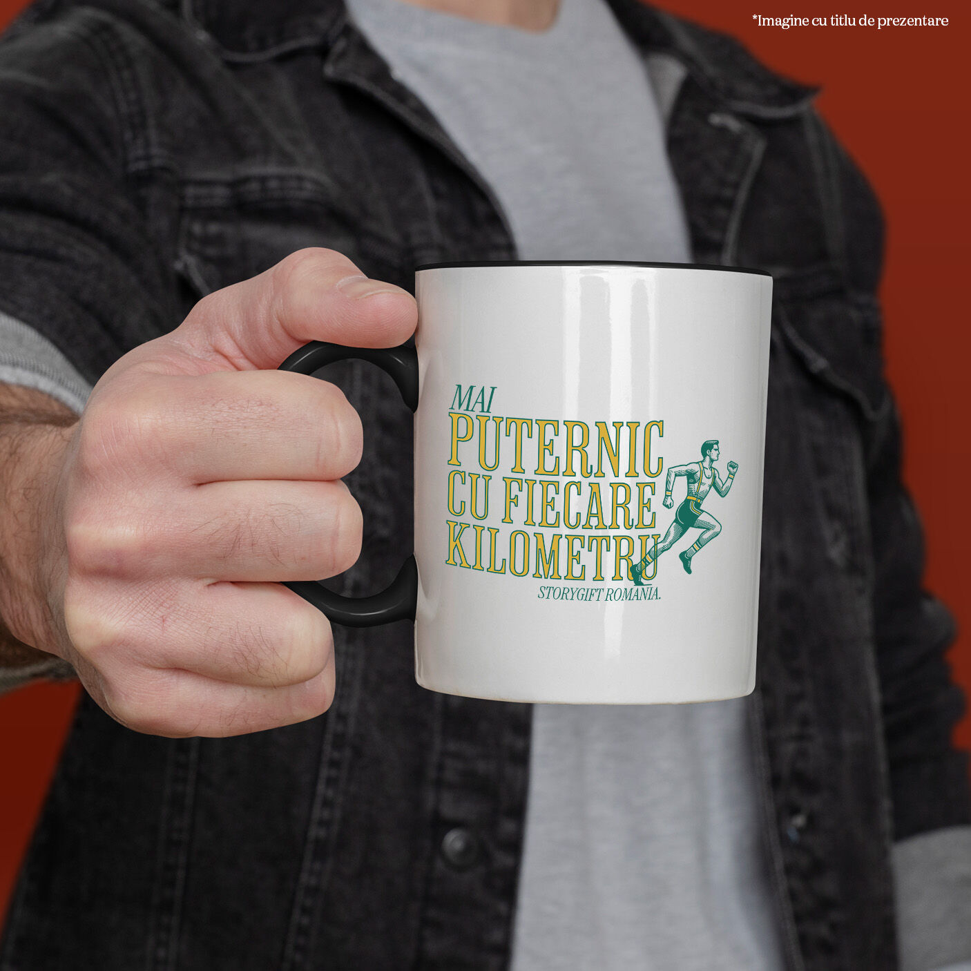 Cana Personalizata cu Silueta Umana Alergare Sport Antrenament Motivational Puternic, Ceramica, 330ML, cu Maner Negru