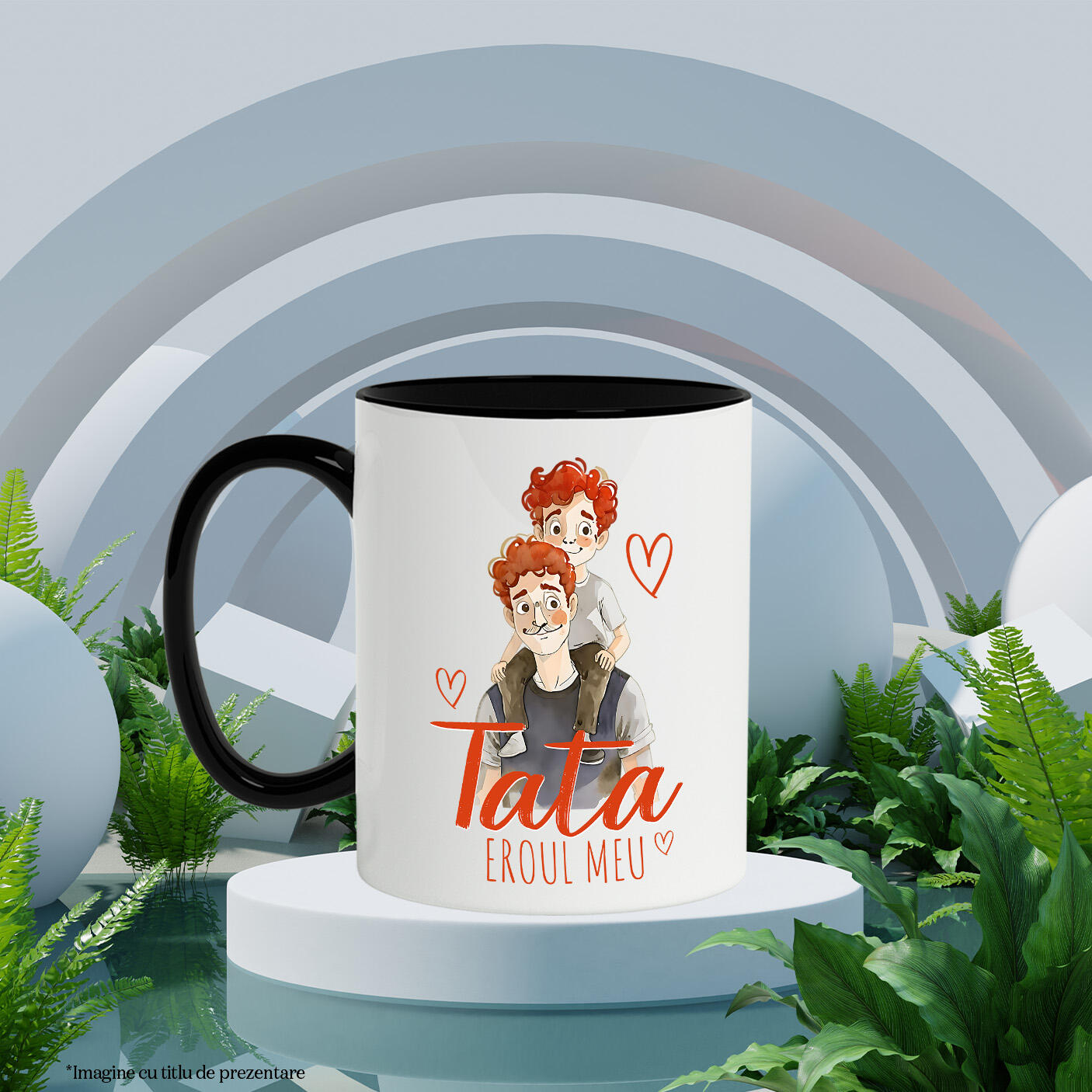 Cana Personalizata cu Tata Si Copil Pe Umeri Familie, Copilarie, Baiat, Iubire, Dragoste, Ceramica, 330ML, cu Maner Negru