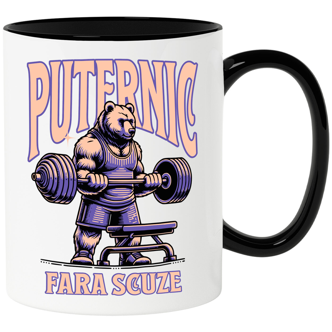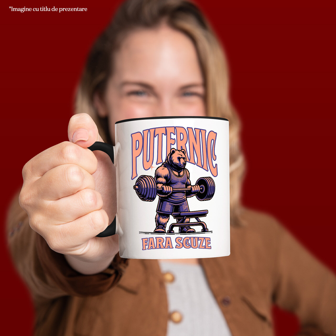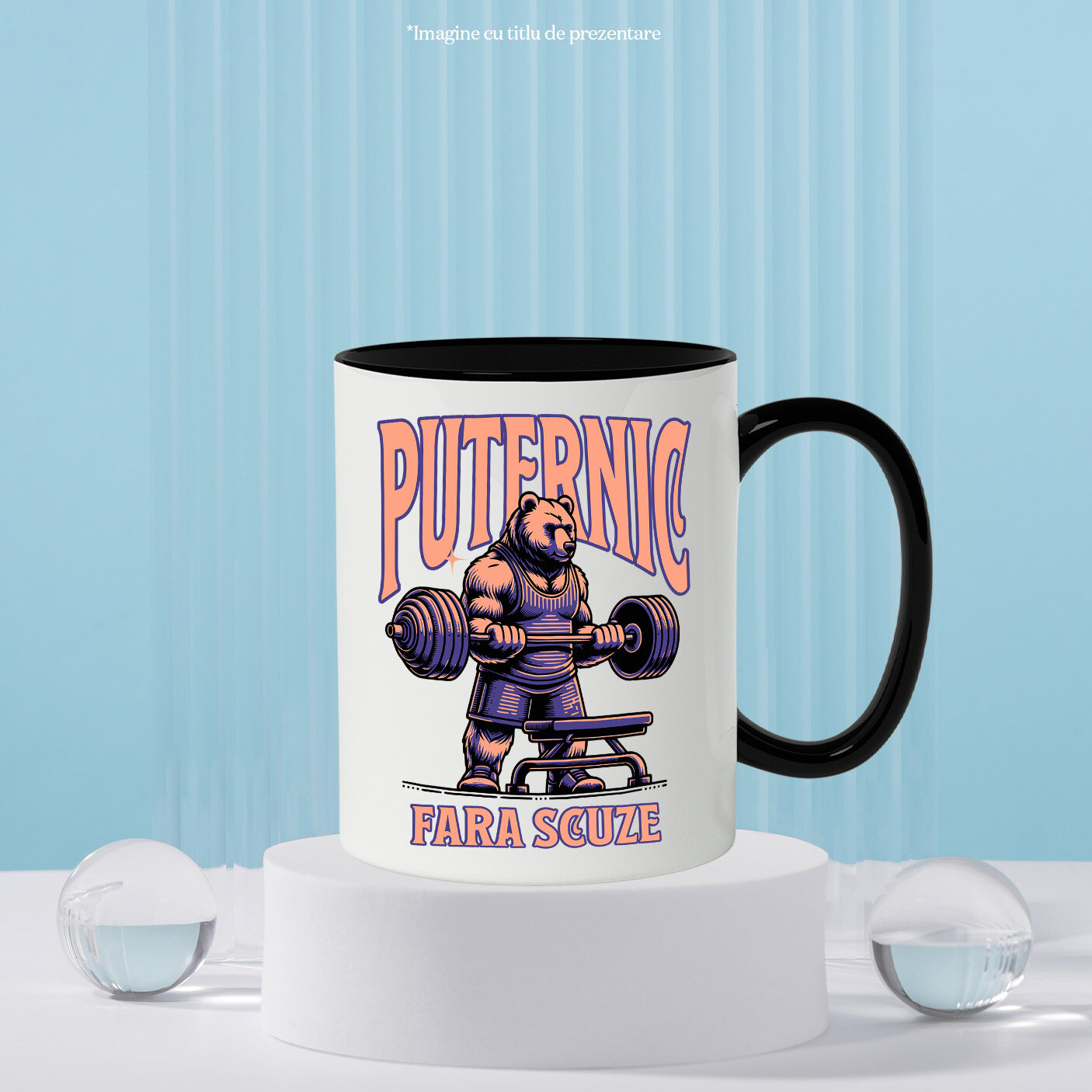Cana Personalizata cu Urs Puternic Cu Maiou Ridicand Greutati Sport Sala, Ceramica, 330ML, cu Maner Negru