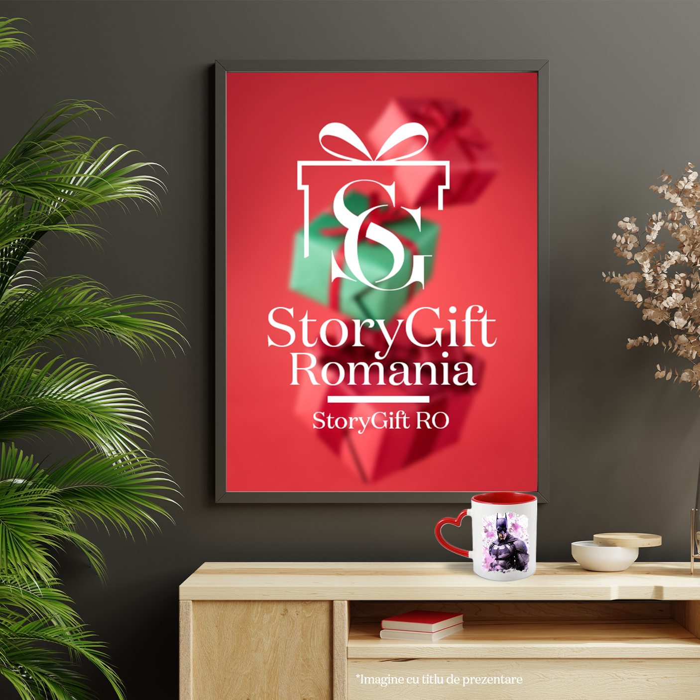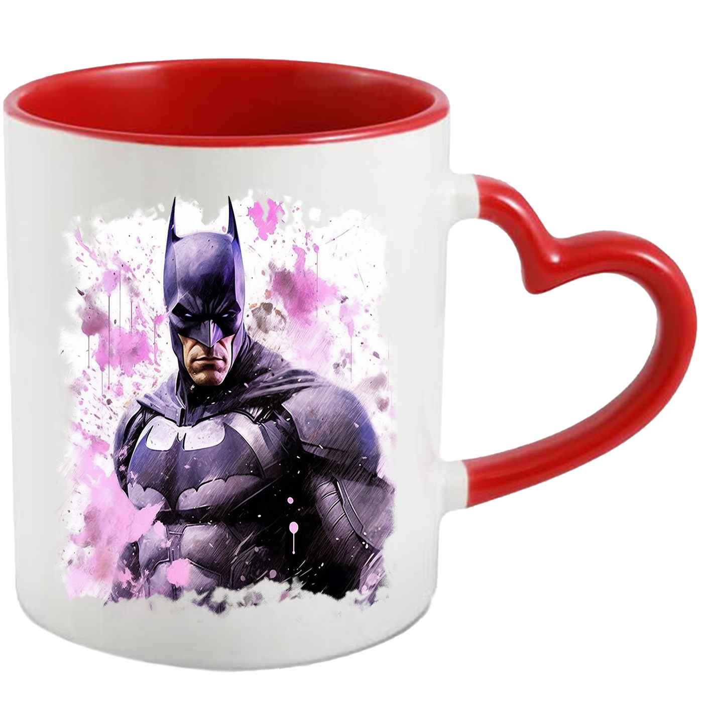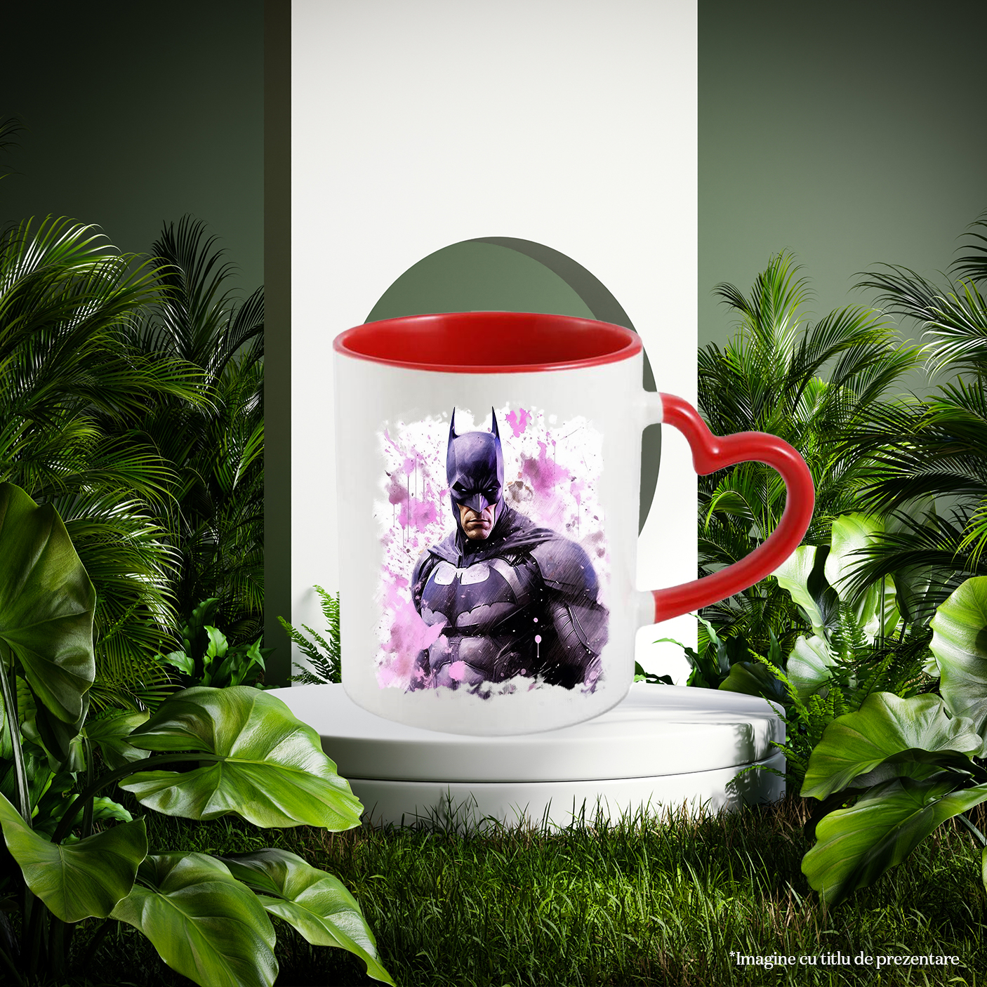 Cana Cu Batman, Ilustratie, Supererou, DC, Bruce Wayne, Vopsea, Multicolor 330 ml, Ceramica cu Maner Inima Rosie