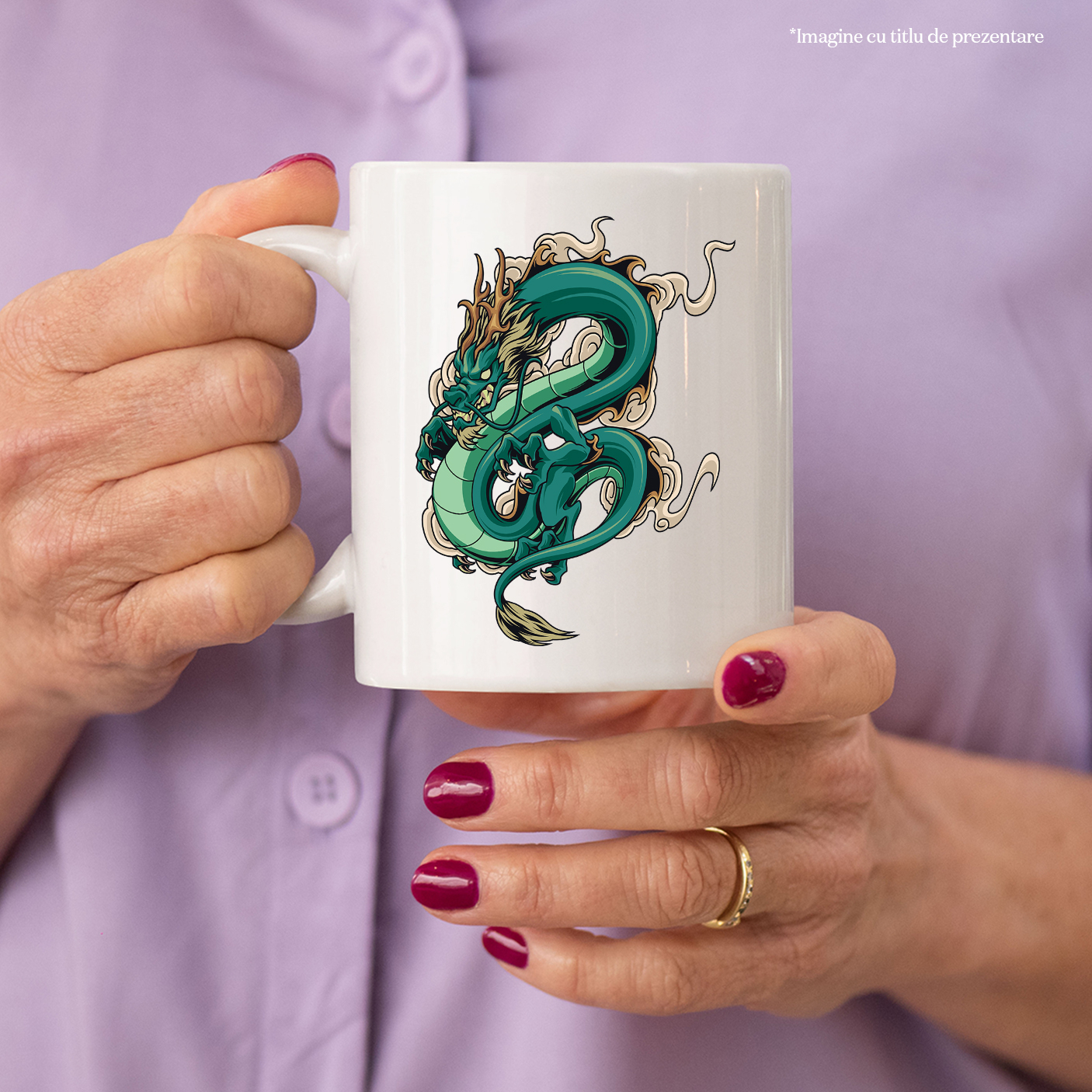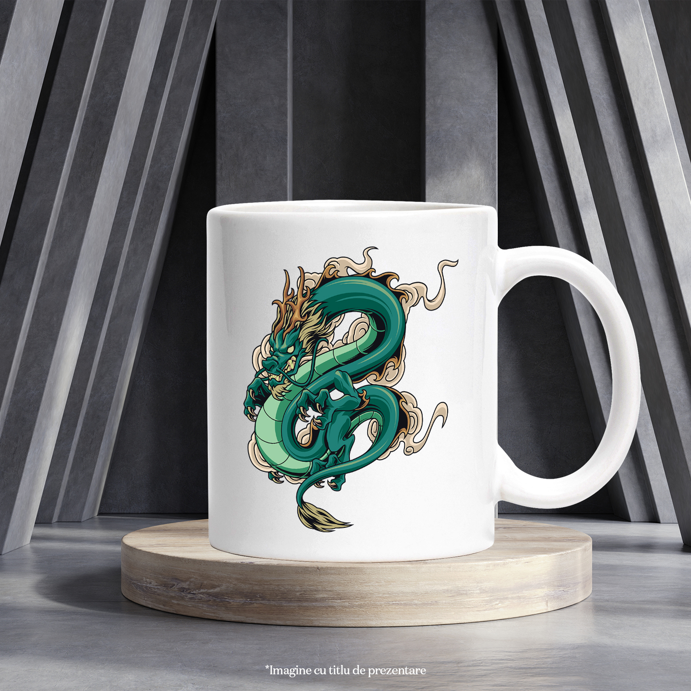 Cana Cu Dragon, Fum, Nor, Asiatic, Multicolor 330 ml, Ceramica cu Maner Alb