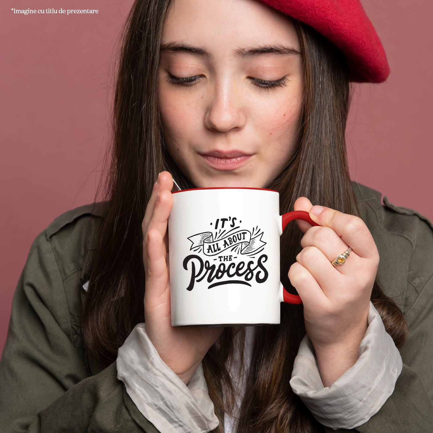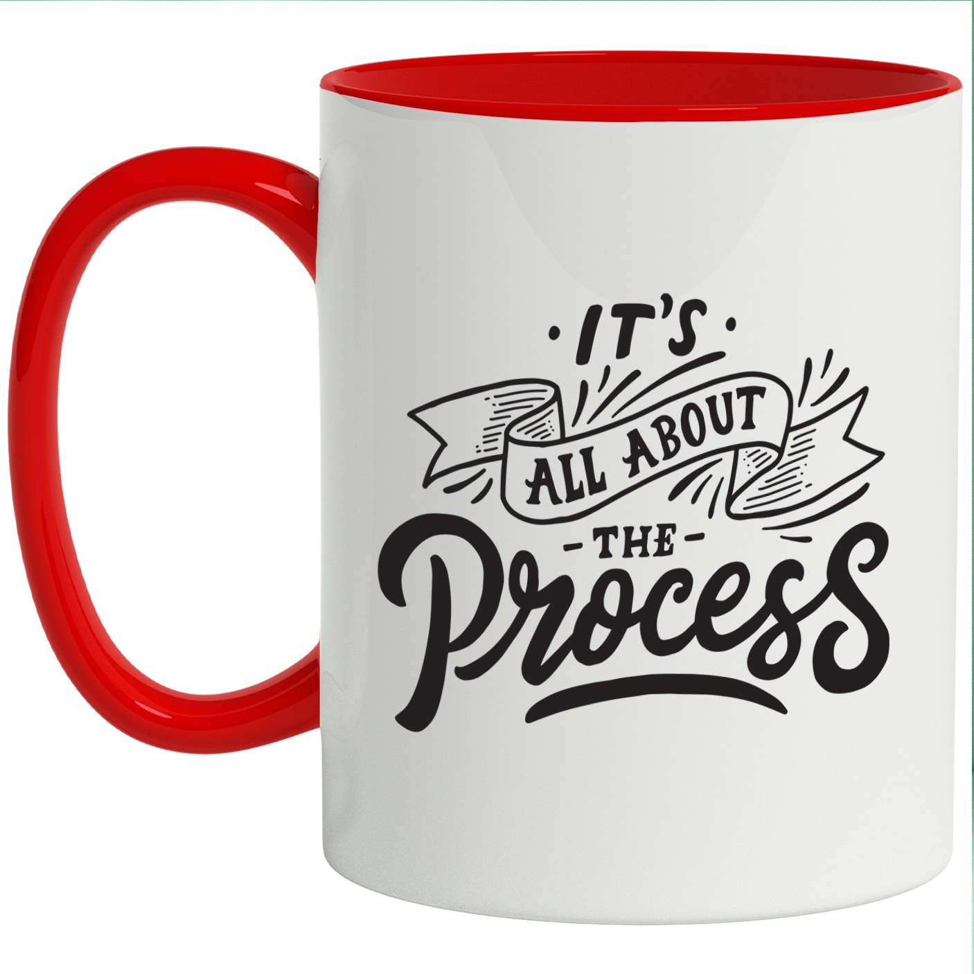 Cana Cu Mesaj It's All About The Process, Keep Up, Negru, 330 ml, Maner Negru cu maner Rosu