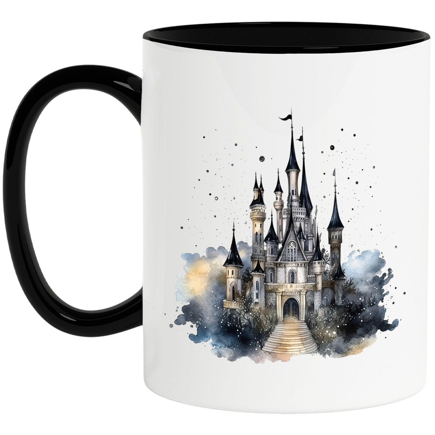 Cana cu un palat ca in povesti | ilustratie | Disneyland | pictat | lumea povestilor | desene animate | atmosfera placuta | 330ml | Ceramica cu Maner Negru