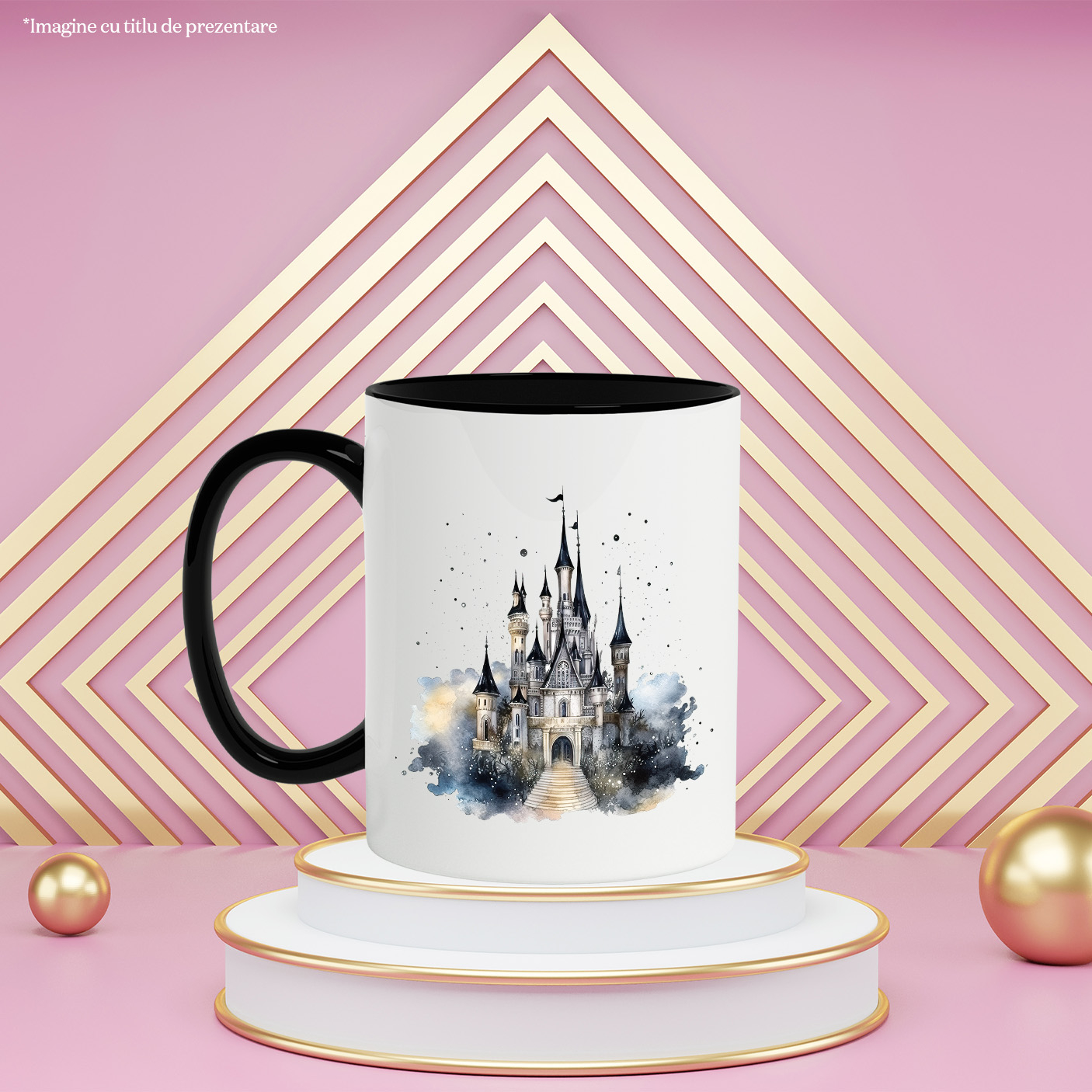 Cana cu un palat ca in povesti, ilustratie, Disneyland, pictat, lumea povestilor, desene animate, atmosfera placuta, 330ml, Ceramica cu Maner Negru