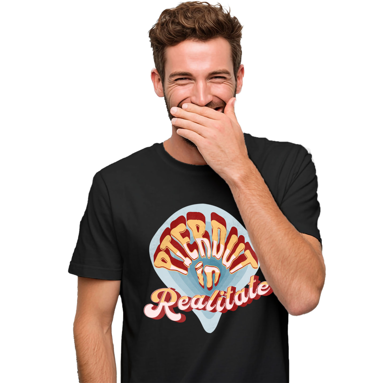 Tricou Barbati cu Font Horror Mesaj Limba Romana Pierdut In Realitate cu imprimeu pe Fata, 100% Bumbac, Negru, L