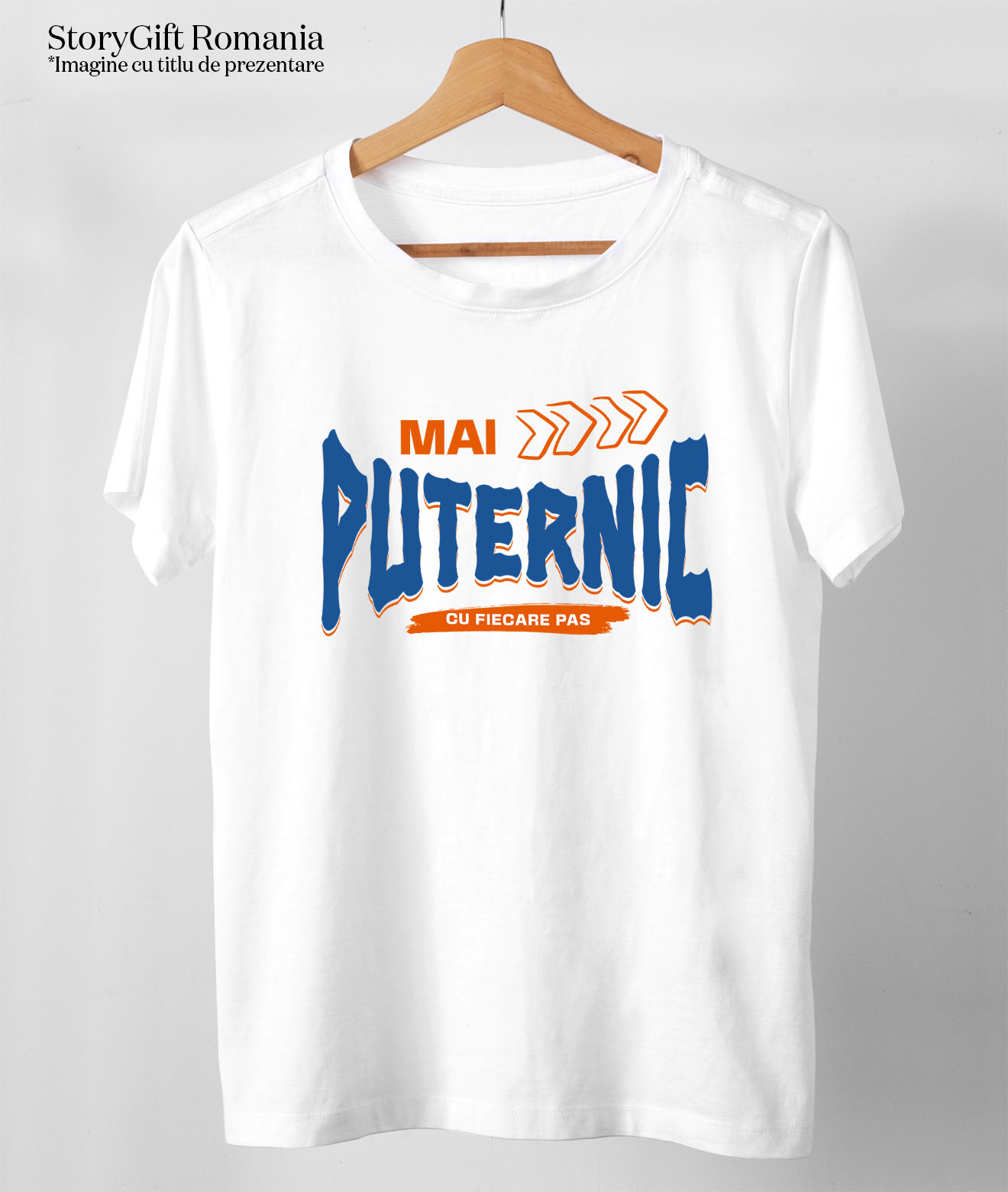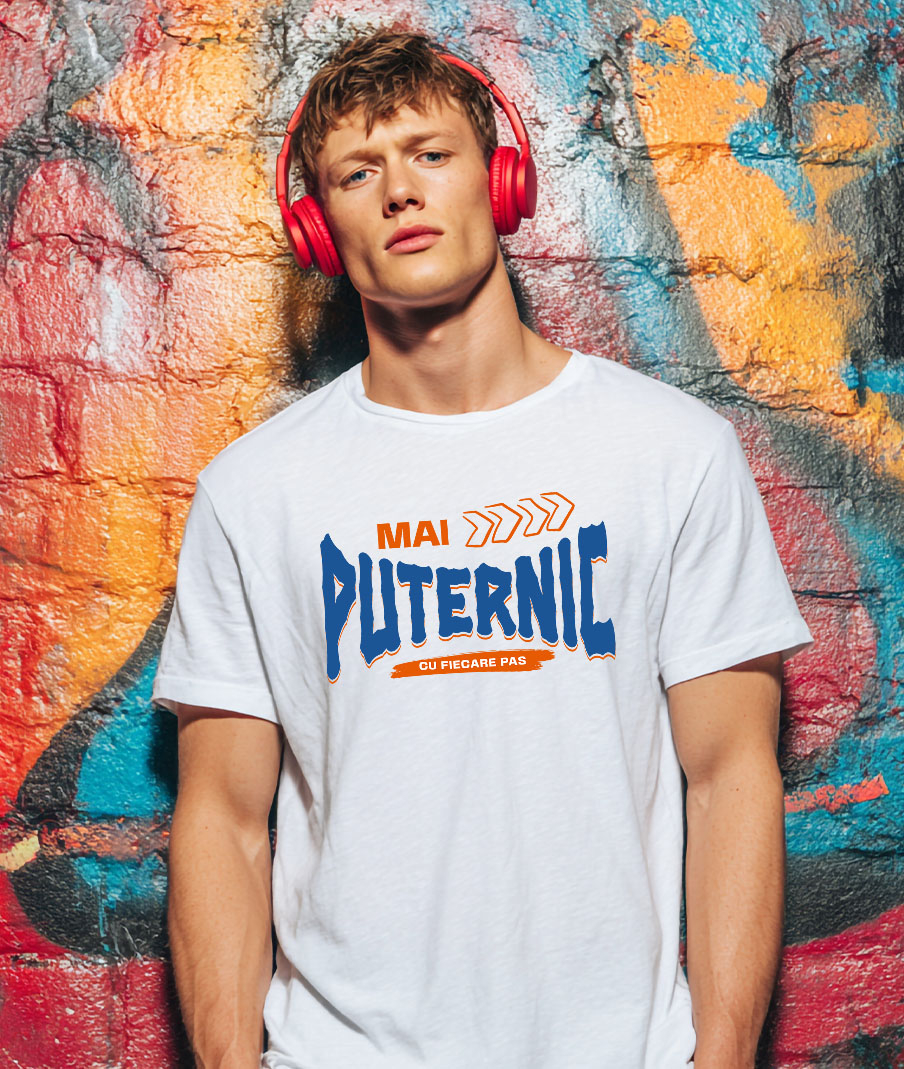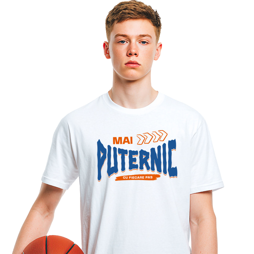Tricou Barbati cu Mesaj Inspirational In Limba Roamana Puternic Inspirational cu imprimeu pe Fata, 100% Bumbac, Alb, L