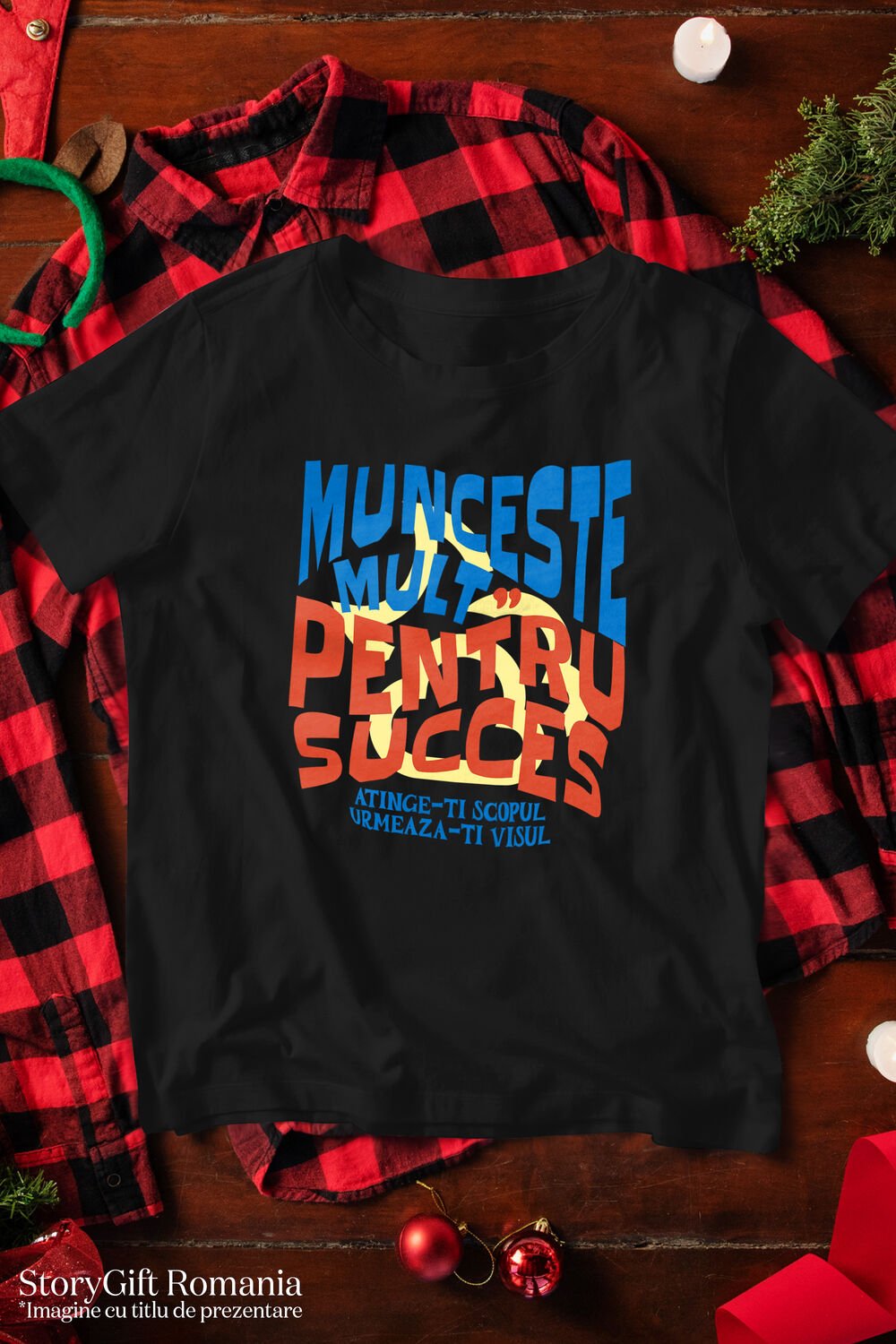 Tricou Barbati cu Mesaj Motivational In Limba Romana Munceste Mult Pentru Succes cu imprimeu pe Fata, 100% Bumbac, Negru, L