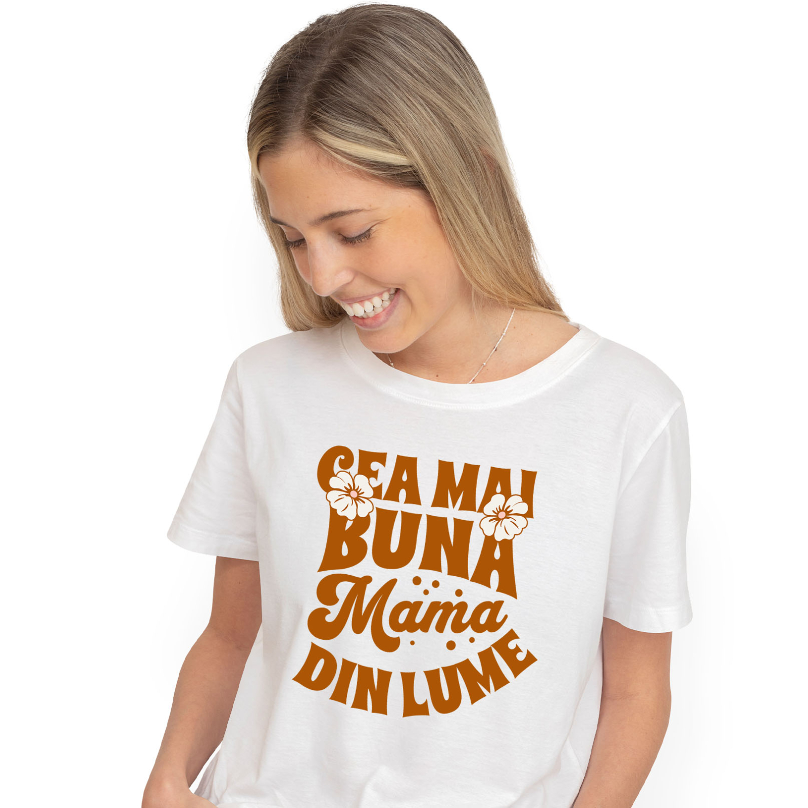 Tricou Femei cu Mesaj Ziua Mamei Cea Mai Buna Mama Din Lume cu imprimeu pe Fata, 100% Bumbac, Alb, M