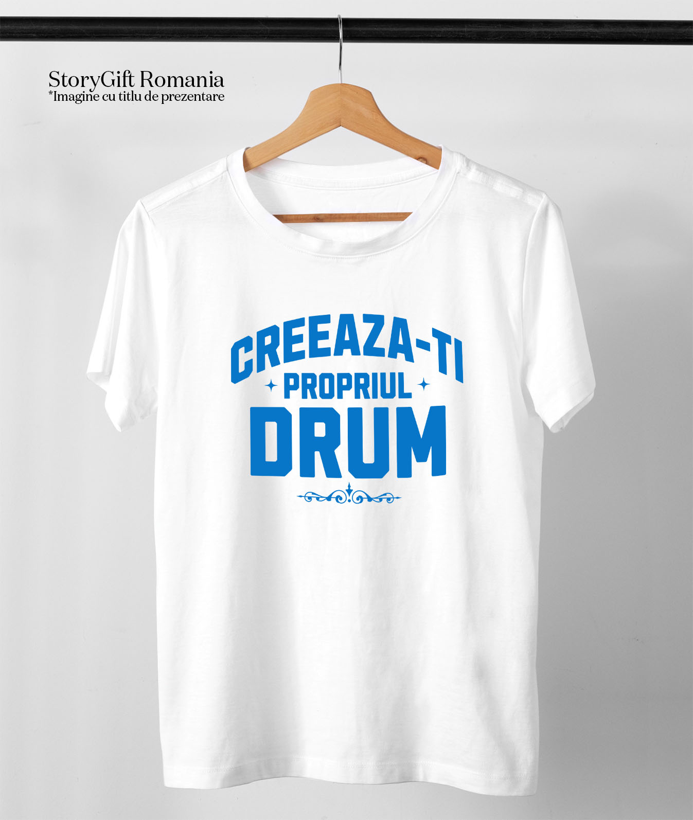 Tricou Barbati cu Motivational Creeeaza-ti Propriul Drum, Self Care, cu imprimeu pe Fata, 100% Bumbac, Alb, XL