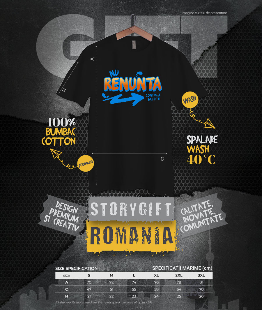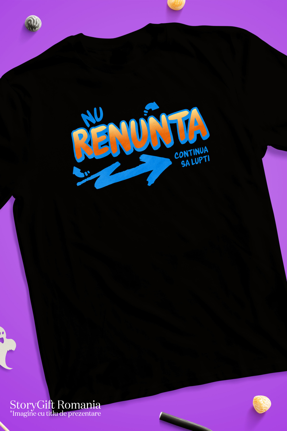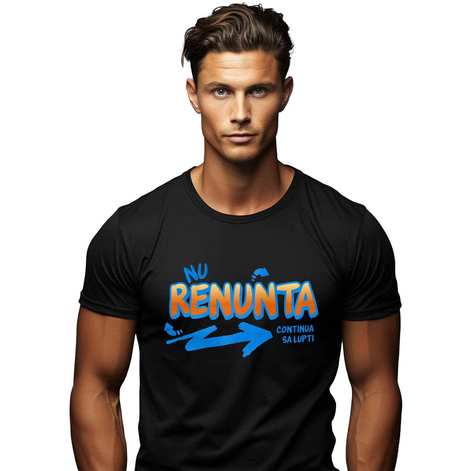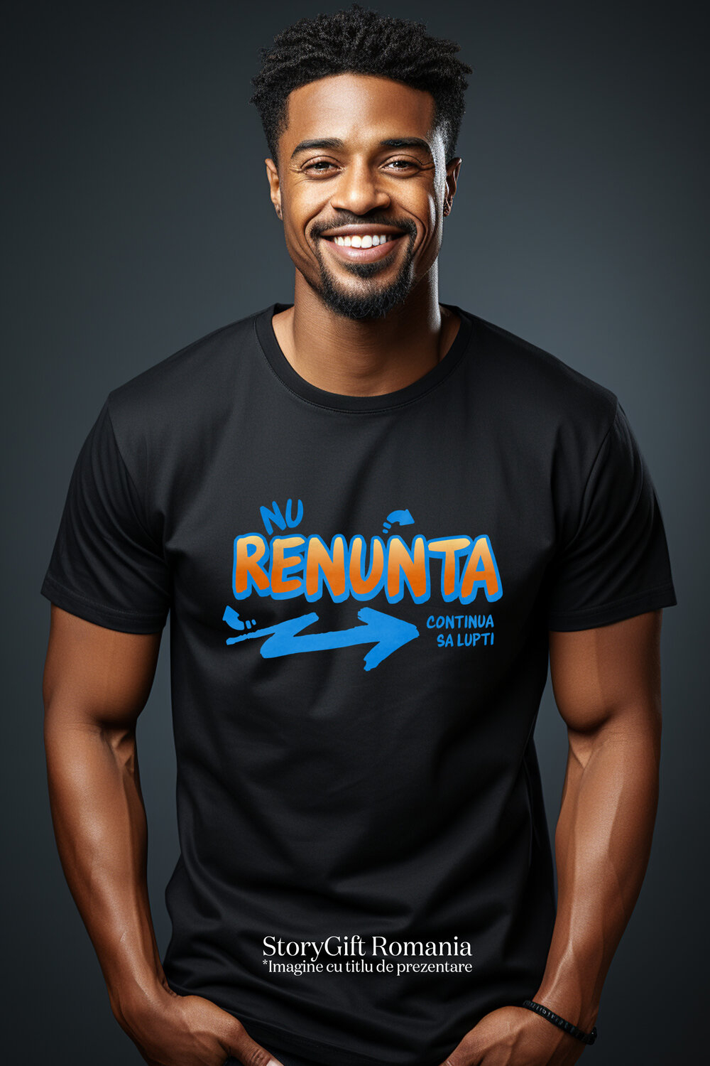 Tricou Barbati cu Sageata Desen Stil Stradal Motivational Nu Renunta Continua Sa Lupti cu imprimeu pe Fata, 100% Bumbac, Negru, L