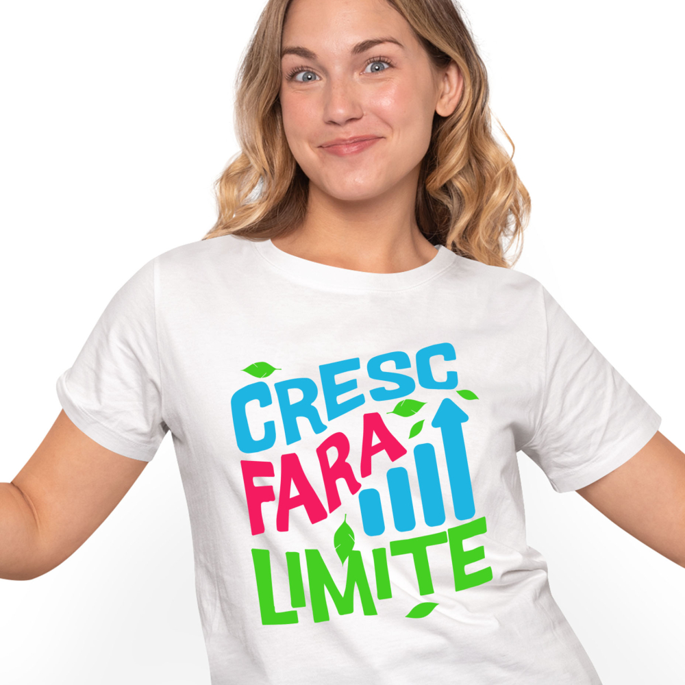 Tricou Femei cu Sageata Pozitiva Text Colorat Cresc Fara Limite Motivational Copii Inspirational cu imprimeu pe Fata, 100% Bumbac, Alb, XS