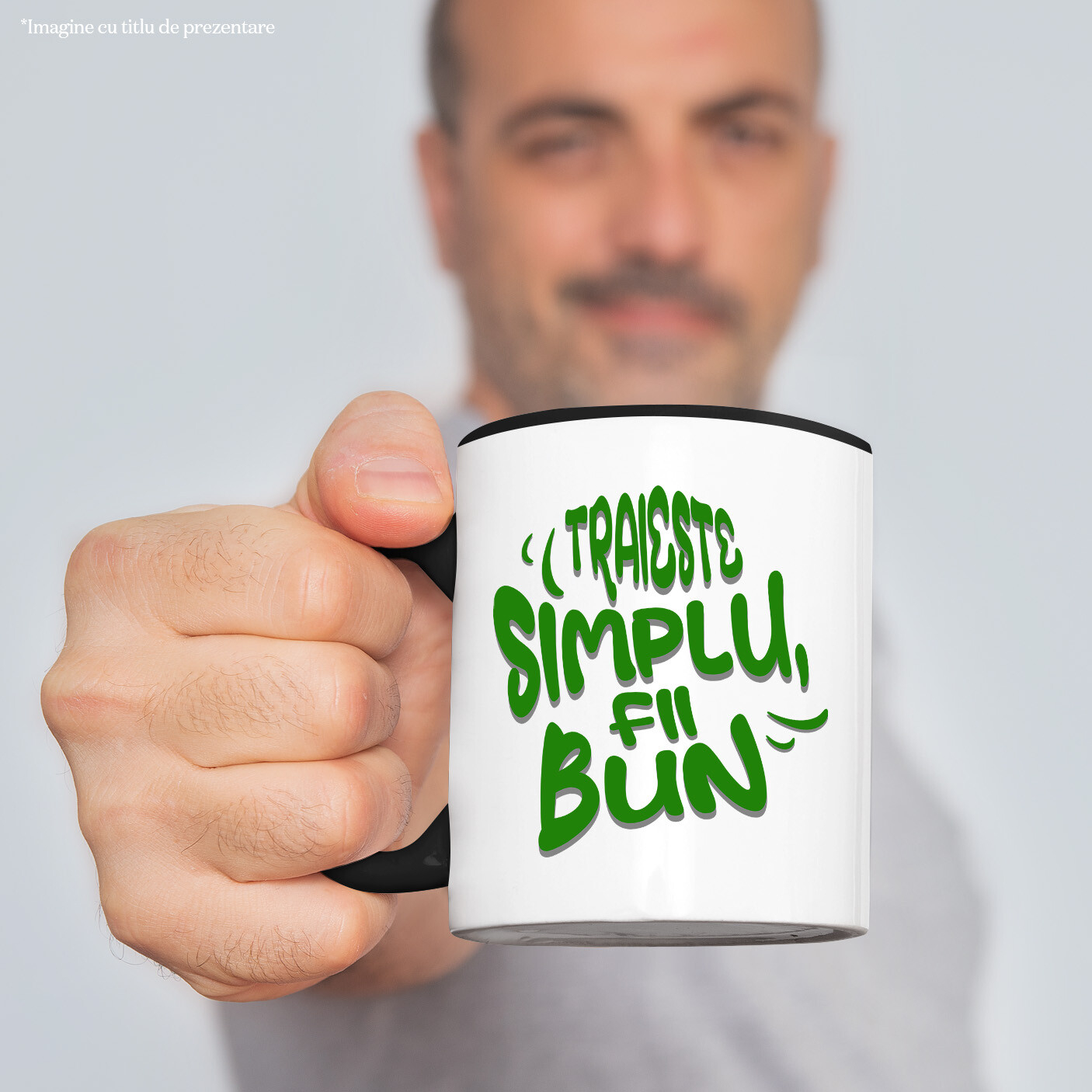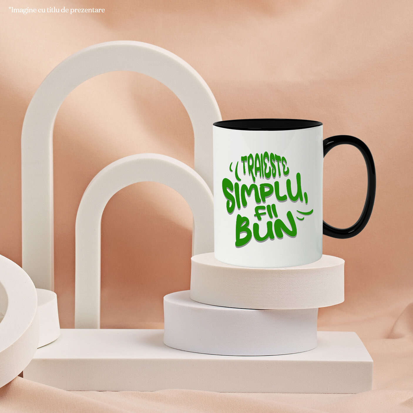 Cana Personalizata cu Iluzie Optica Mesaj In Limba Roaman Traieste Simplu Fii Bun Inspirational Adult, Ceramica, 330ML, cu Maner Negru