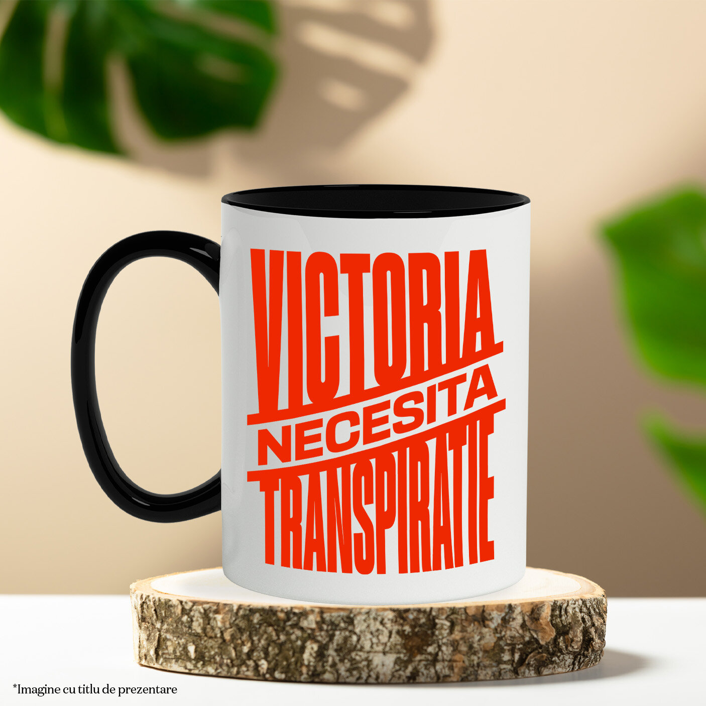 Cana Personalizata cu Mesaj Inspirational Design In Limba Roamana iluzie Optica Victoria , Ceramica, 330ML, cu Maner Negru