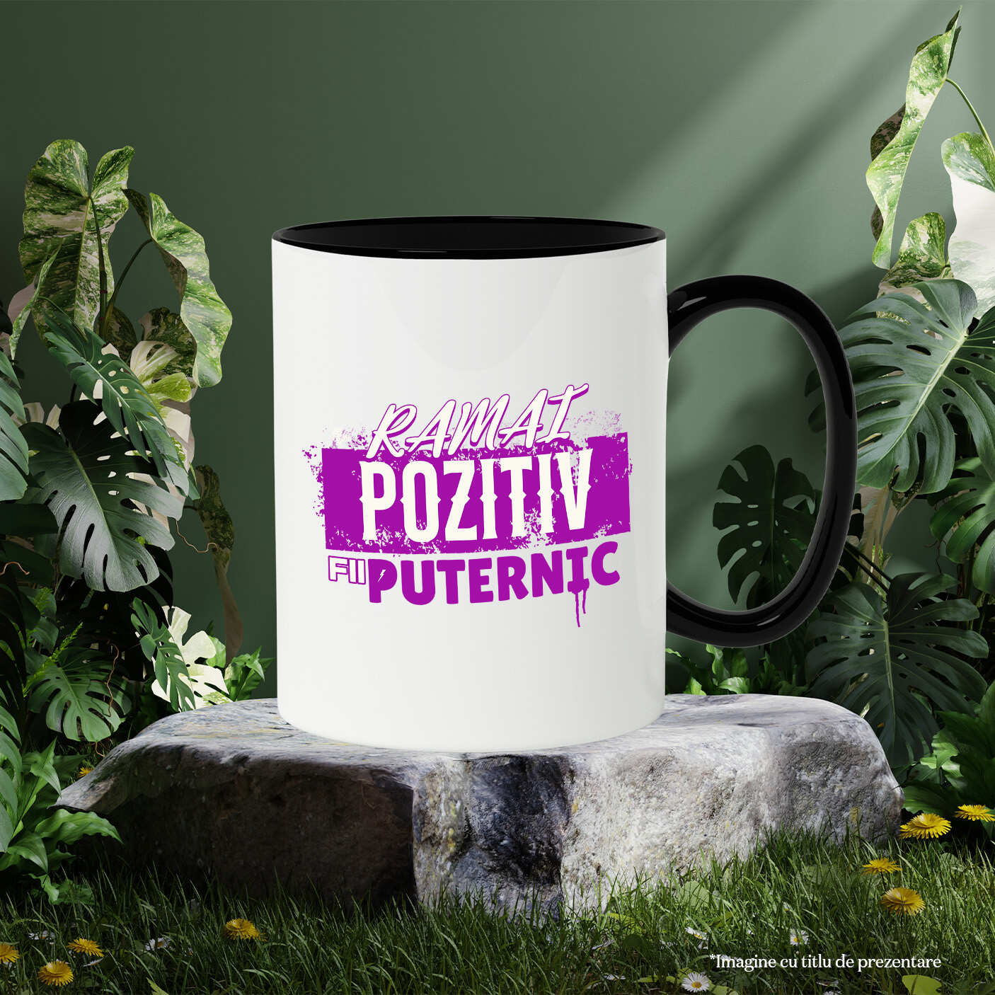 Cana Personalizata cu Mesaj Stil Graffiti Stradal Motivational Ramai Pozitiv Fii Puternic Inspirational, Ceramica, 330ML, cu Maner Negru
