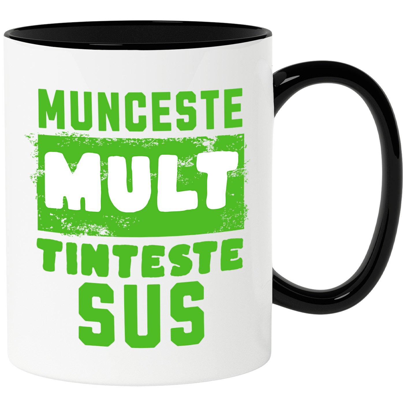 Cana Personalizata cu Mesaj Stil Graffiti Stradal Verde Motivational Mulceste Mult Tinteste Sus Inspirational, Ceramica, 330ML, cu Maner Negru