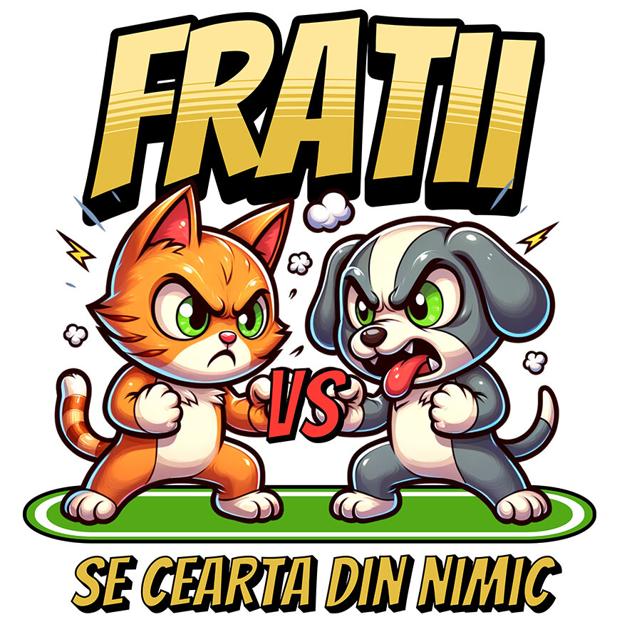 Sticker Personalizat cu Razboi Pisica Si Caine, Fratii, Lupta, Cearta, Animale Blanoase cu Margini Albe, PVC Vinyl 10 cm