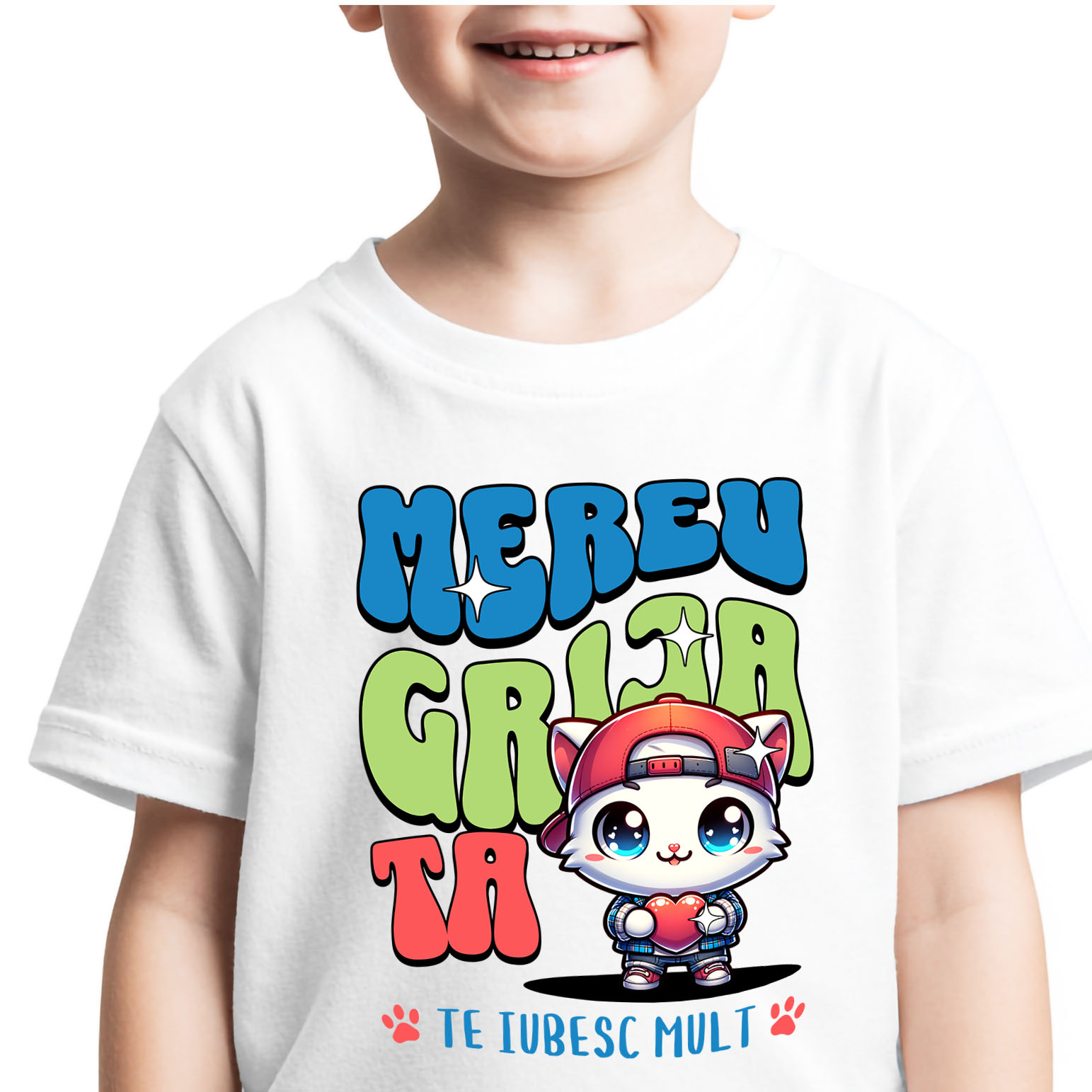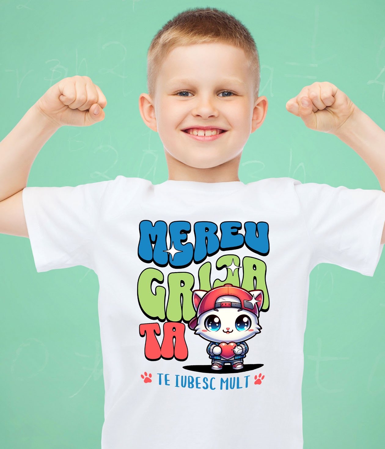 4. Finalizează comanda! 📦 Noi imprimăm cu grijă mesajul tău pe tricoul ales, pentru un rezultat unic.