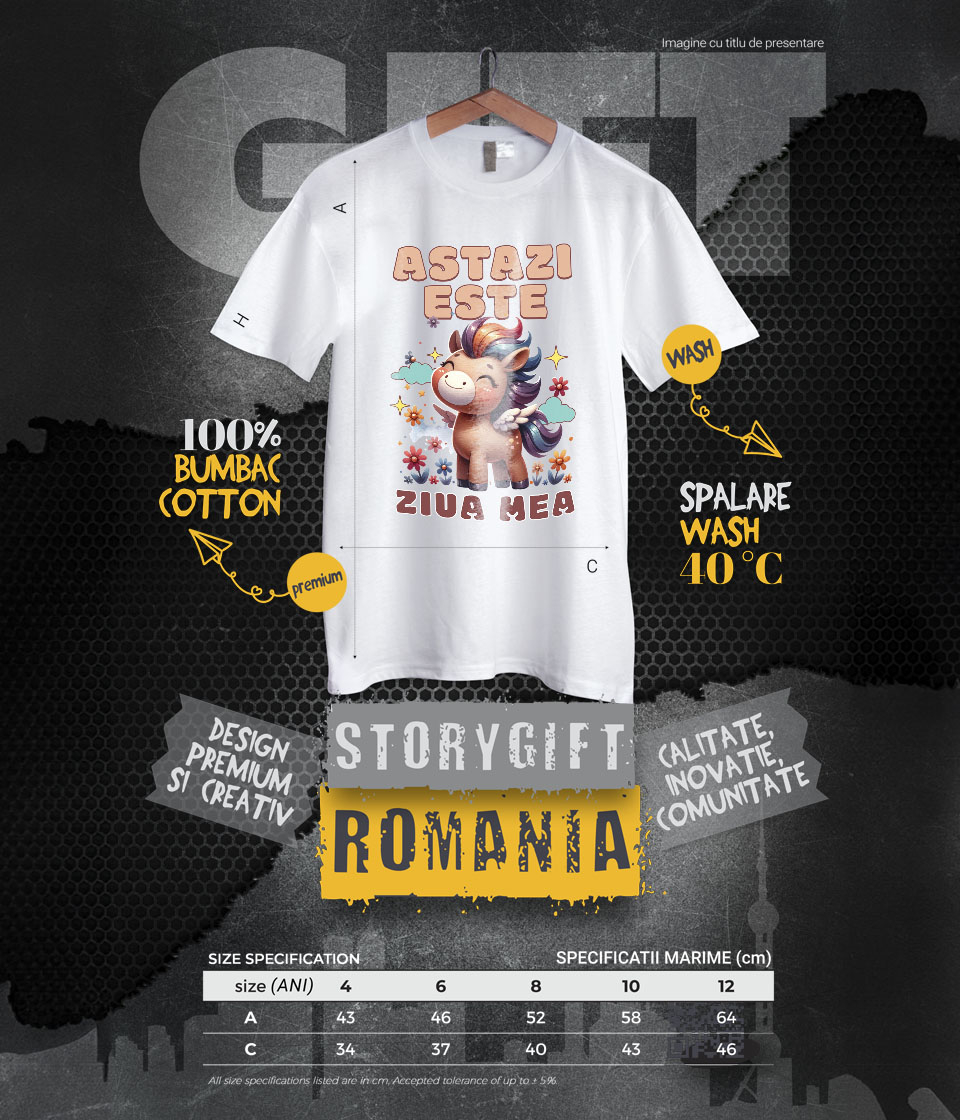 2. Alege pentru cine este tricoul – bărbat, femeie sau copil – și selectează mărimea potrivită pentru un fit perfect!