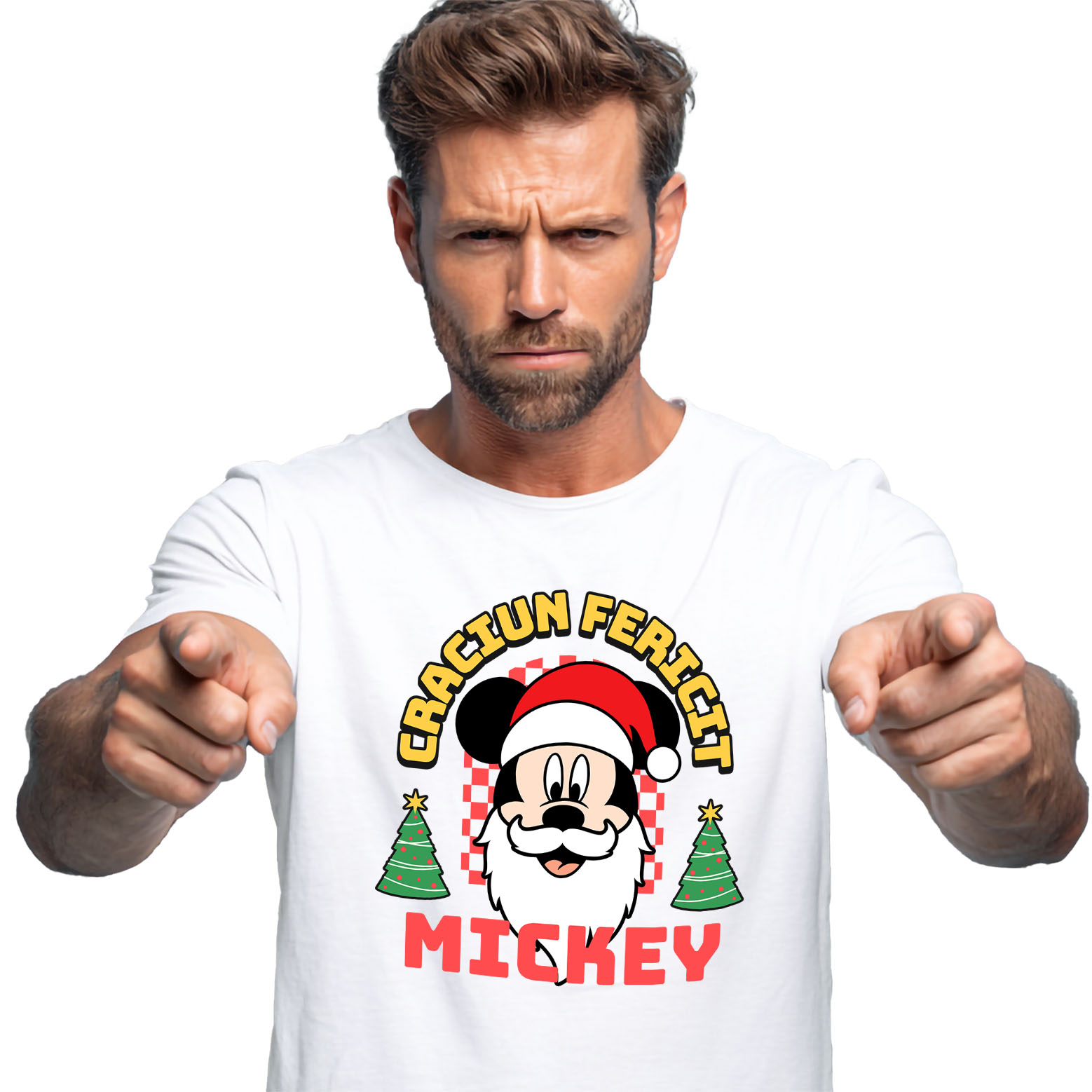 Tricou Barbati cu Mickey Mouse Cadru Plin de Magie de Craciun 100% Bumbac, Alb, L