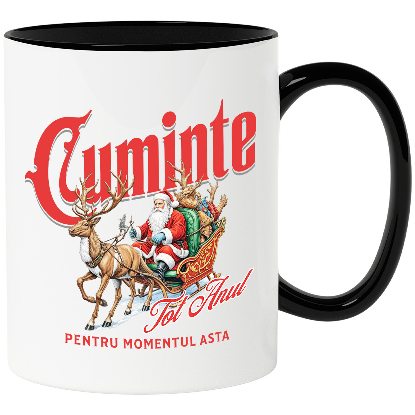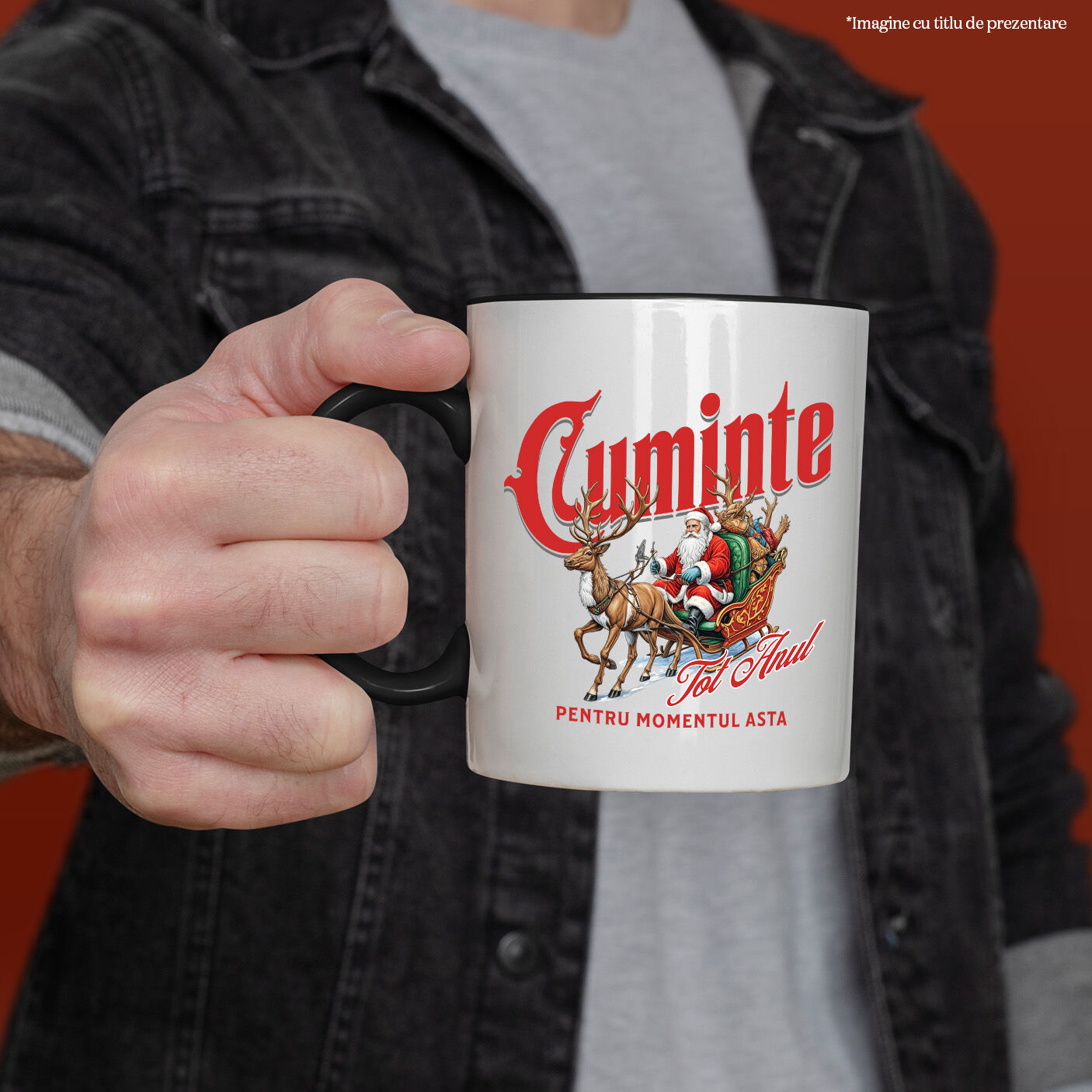 Cana Personalizata cu Sania lui Mos Craciun Trasa De Ren, Cadouri, calatorie Lunga, Copii, Ceramica, 330ML, cu Maner Negru