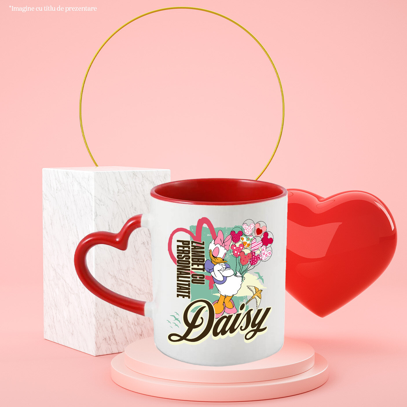 Cana Cu Daisy si petalele de soare Ceramica, 330ML, cu Maner Inima Rosie