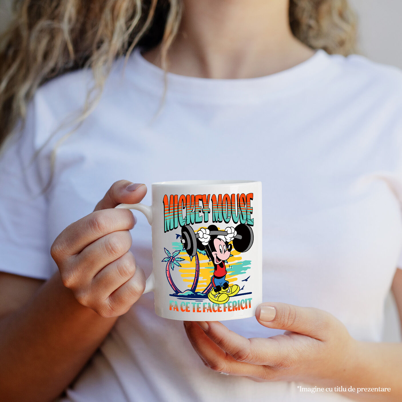 Cana Cu Mickey se distreaza facand sport Ceramica, 330ML, cu Maner Alb