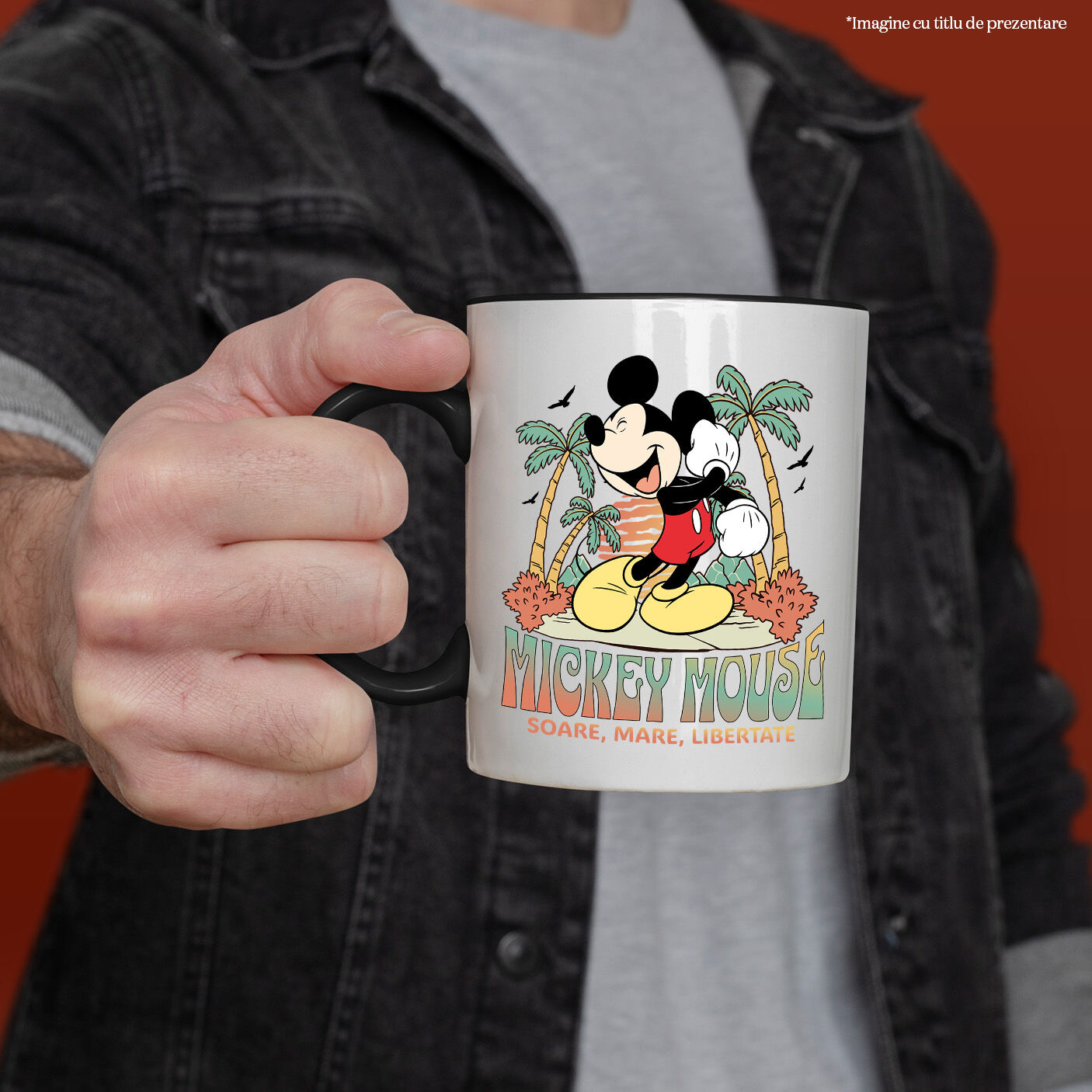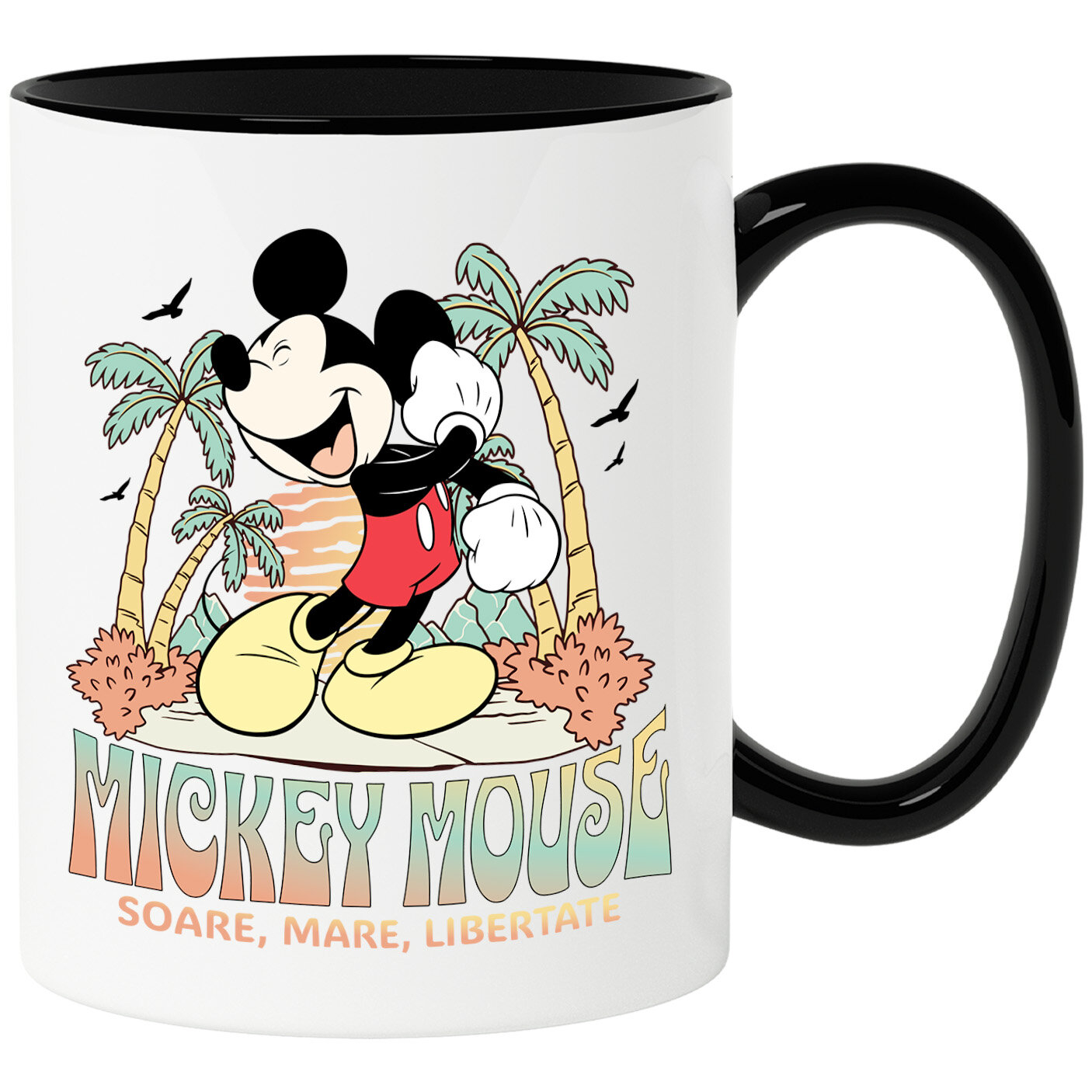 Cana Cu Mickey Mouse si Magia Palmierilor Ceramica, 330ML, cu Maner Negru