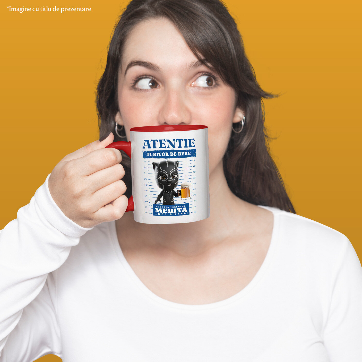 Cana Cu Pantera Neagră: Cadou si Bere pentru Momente de Neuitat Ceramica, 330ML, cu Maner Rosu