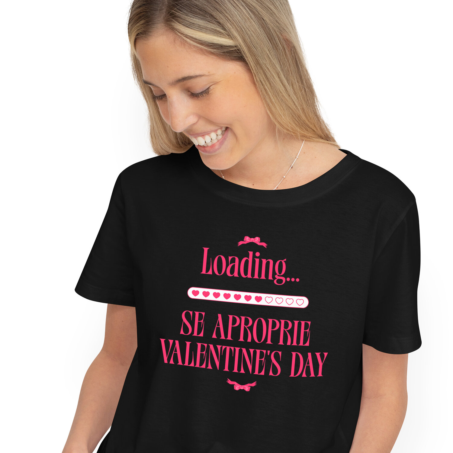 Tricou Femei cu Funda Roz bara Incarcare Valentine's Day, Dragoste, cu imprimeu pe Fata, 100% Bumbac, Negru, S