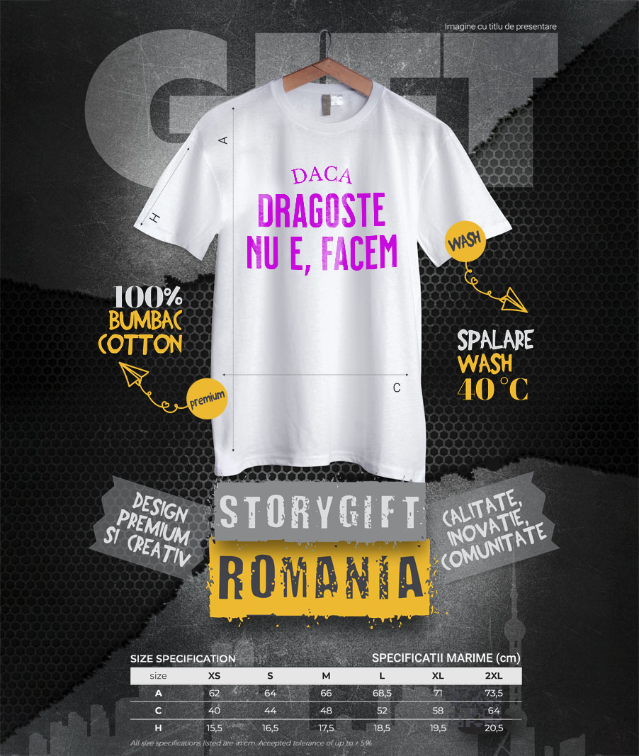 Tricou Femei cu Mesaj Haios In Limba Romana, iubire, Valentine's Day cu imprimeu pe Fata, 100% Bumbac, Alb, S