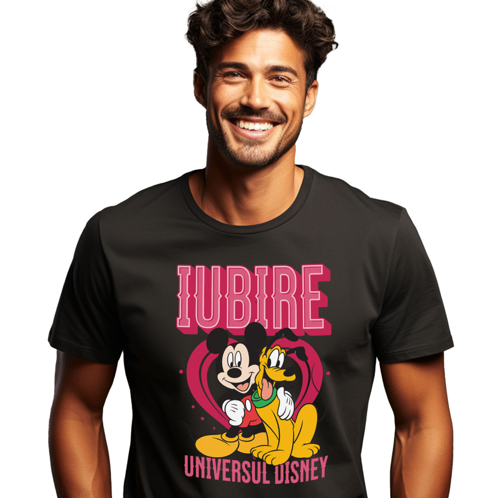 Tricou Barbati cu Mickey si Pluto – Echipa Vesela 100% Bumbac, Negru, L