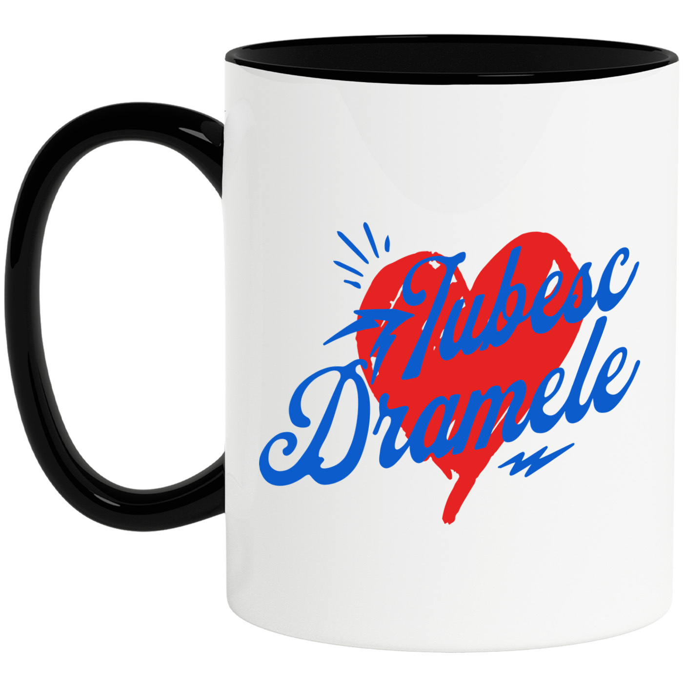 Cana Personalizata cu Inima Rosie Stil Desen, Dragoste, Valentine's Day, Iubire, Ceramica, 330ML, cu Maner Negru