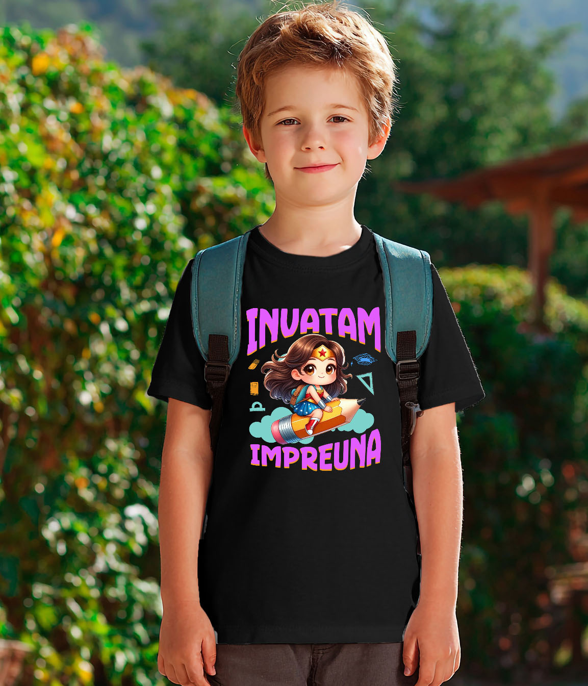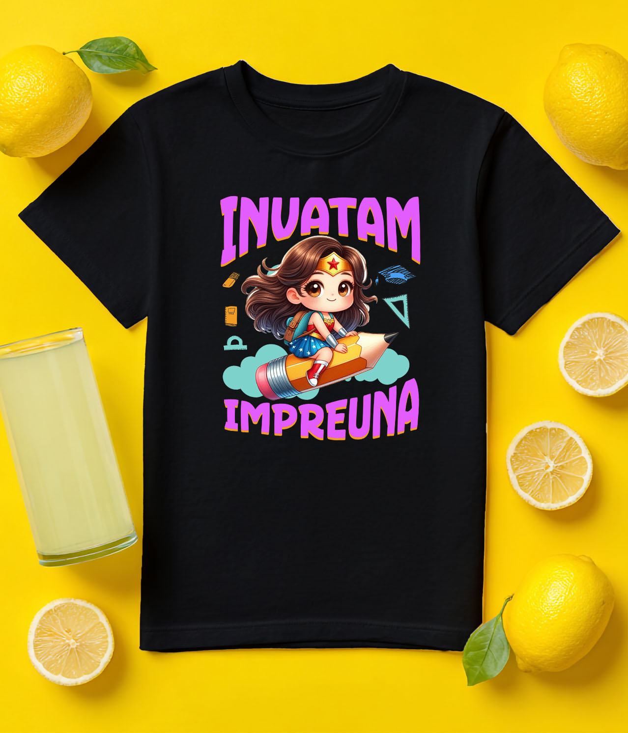 Tricou Copii cu Wonder Woman – Joaca si Cunoastere 100% Bumbac, Negru, 10 Ani