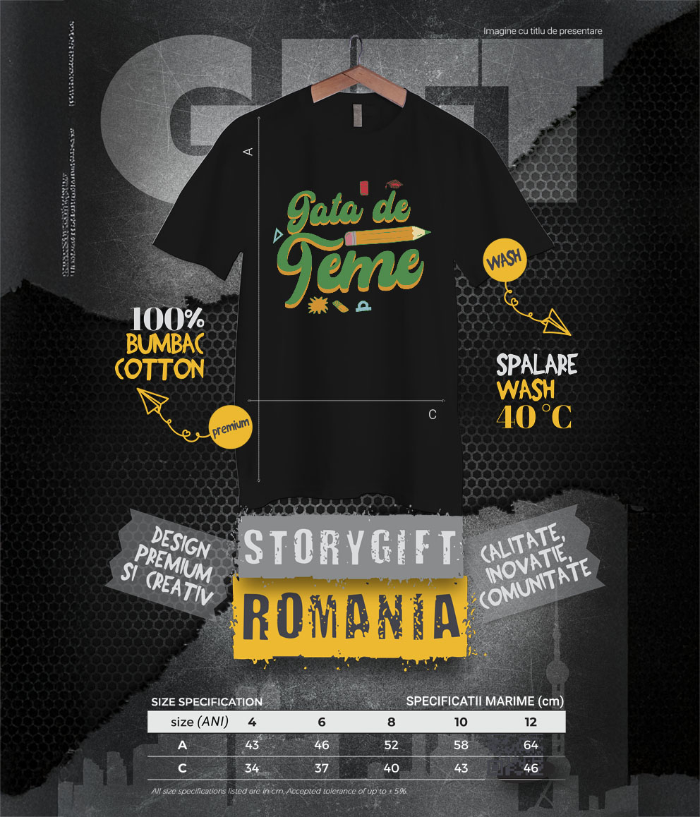 Tricou Copii cu Rechizite Scoala Creion Text In Limba Romana Educatie Copii cu imprimeu pe Fata, 100% Bumbac, Negru, 12 Ani