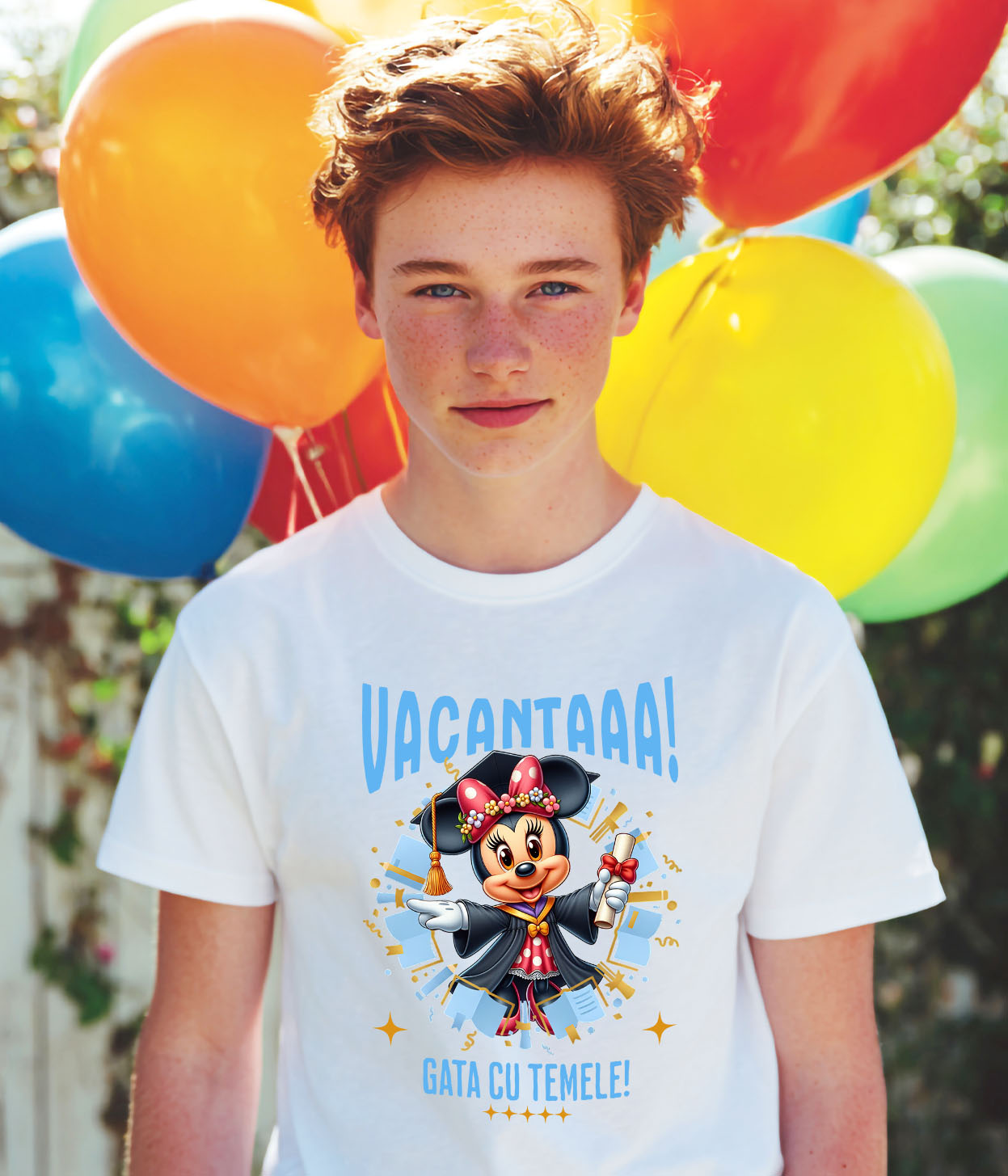 Tricou Copii cu Diplome si Zambete cu Minnie Mouse 100% Bumbac, Alb, 6 Ani