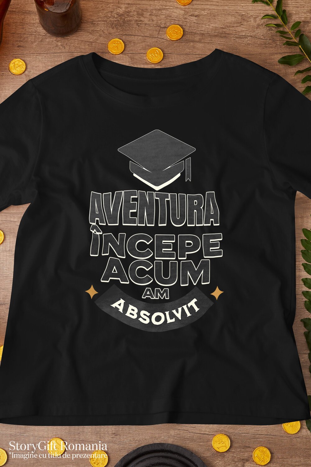 Tricou Femei cu Toca Absolvire Scoala educatie Aventura Adult, Facultate cu imprimeu pe Fata, 100% Bumbac, Negru, XL