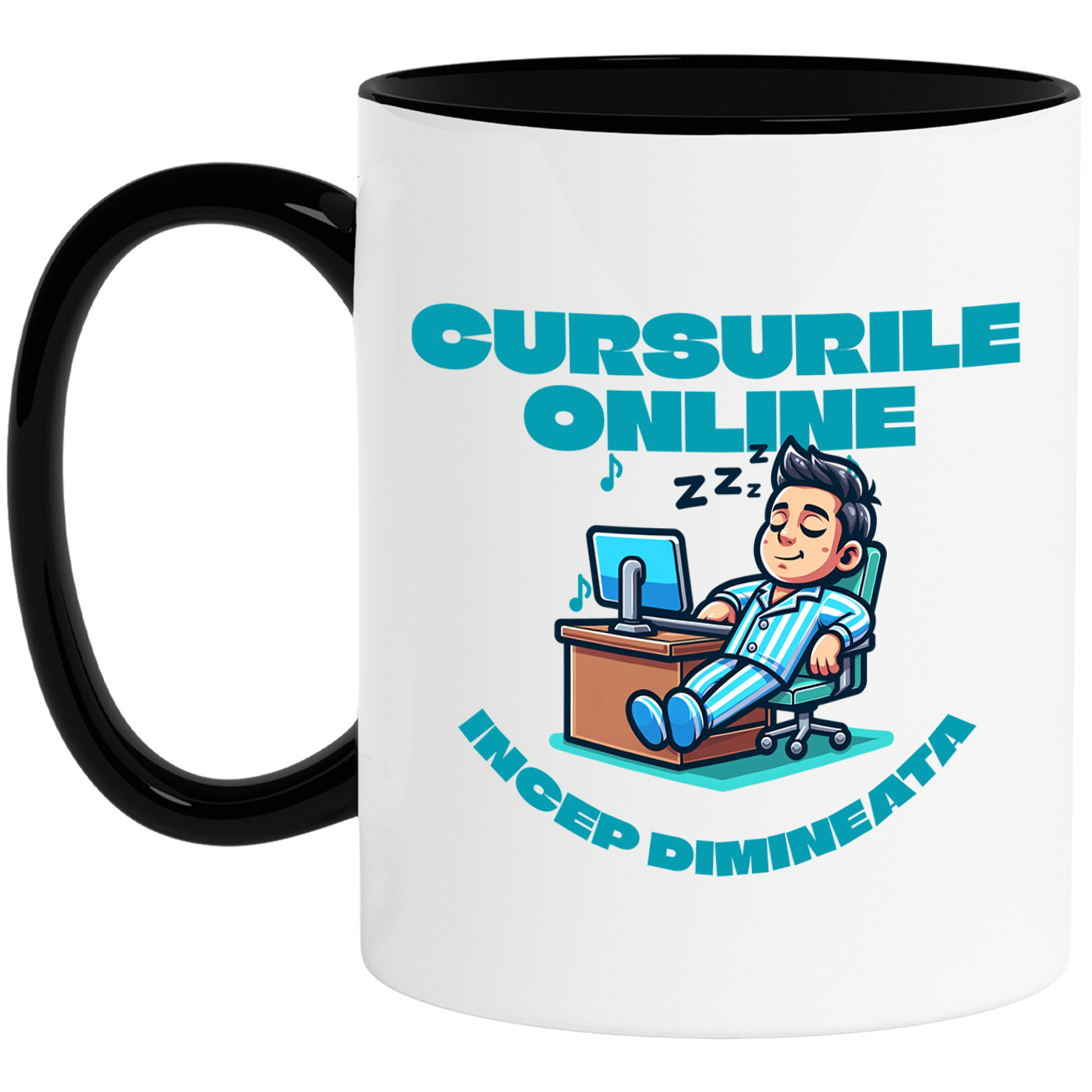 Cana Personalizata cu Barbat In Pijama La Birou Dormind Dimineata Scoala, Copii, Ceramica, 330ML, cu Maner Negru