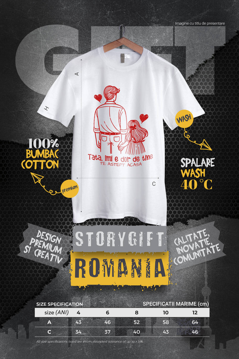 2. Alege pentru cine este tricoul – bărbat, femeie sau copil – și selectează mărimea potrivită pentru un fit perfect!