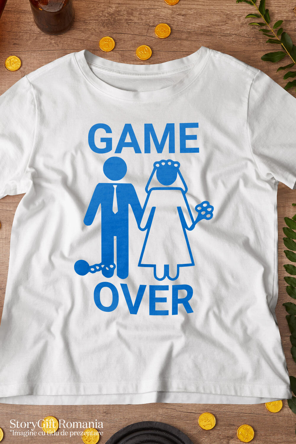 Tricou Barbati cu Design Haios Ziua Nuntii Cuplu Portret Mire Si Mireasa, Barbat Cu Lant cu imprimeu pe Fata, 100% Bumbac, Alb, S