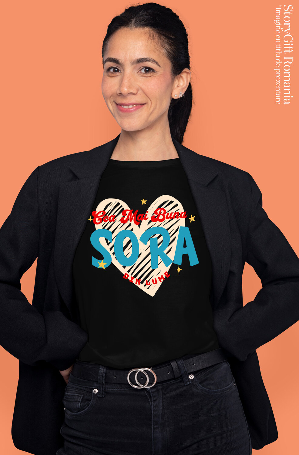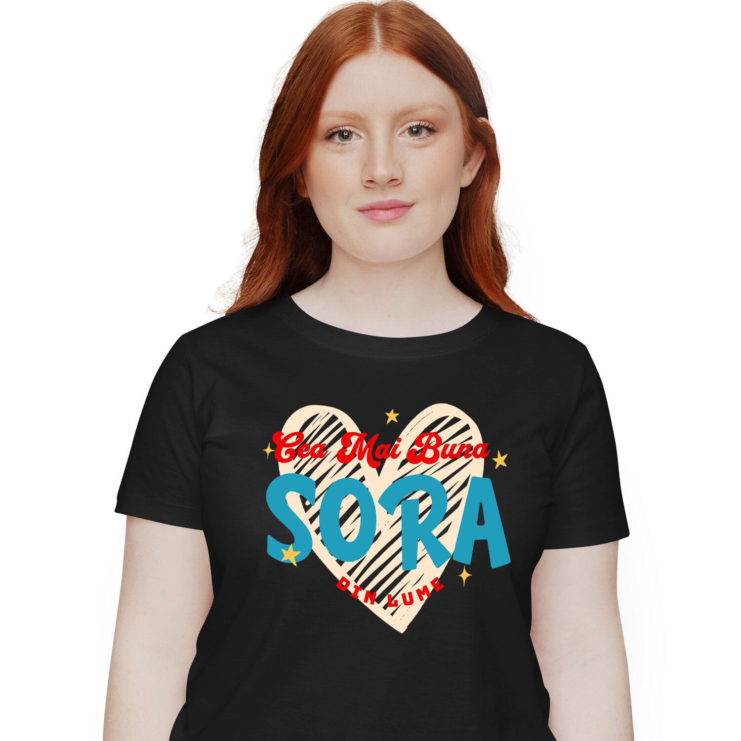 Tricou Femei cu Inima desenata crem Cu Stele Aurii, familie, Sora, Mama, Copii cu imprimeu pe Fata, 100% Bumbac, Negru, XL