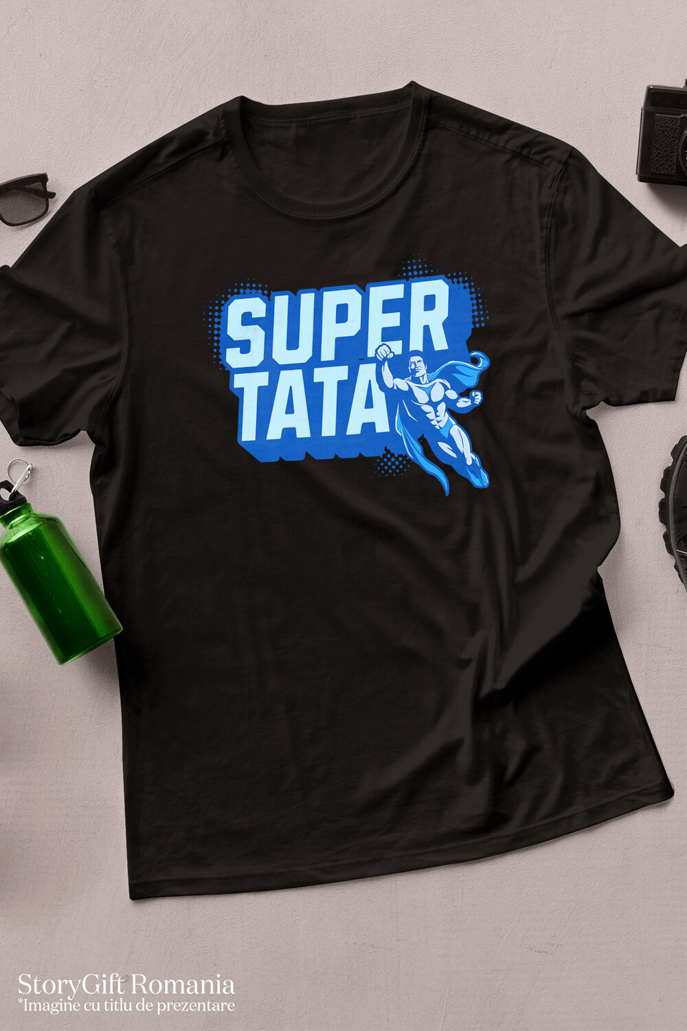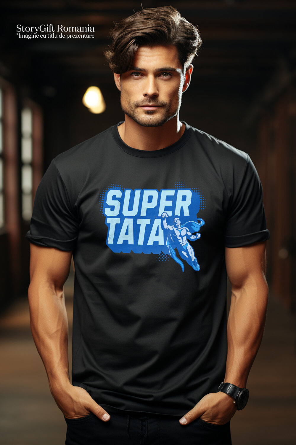 Tricou Barbati cu Super erou In Zbor, Super tata unchi Prieten Familie Copii cu imprimeu pe Fata, 100% Bumbac, Negru, L