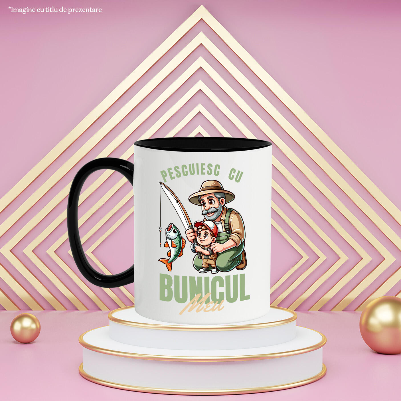 Cana Personalizata cu Batran Si Nepot La Pescuit, Familie, Undita Cu Peste, Activitati Cu Bunicul, Ceramica, 330ML, cu Maner Negru