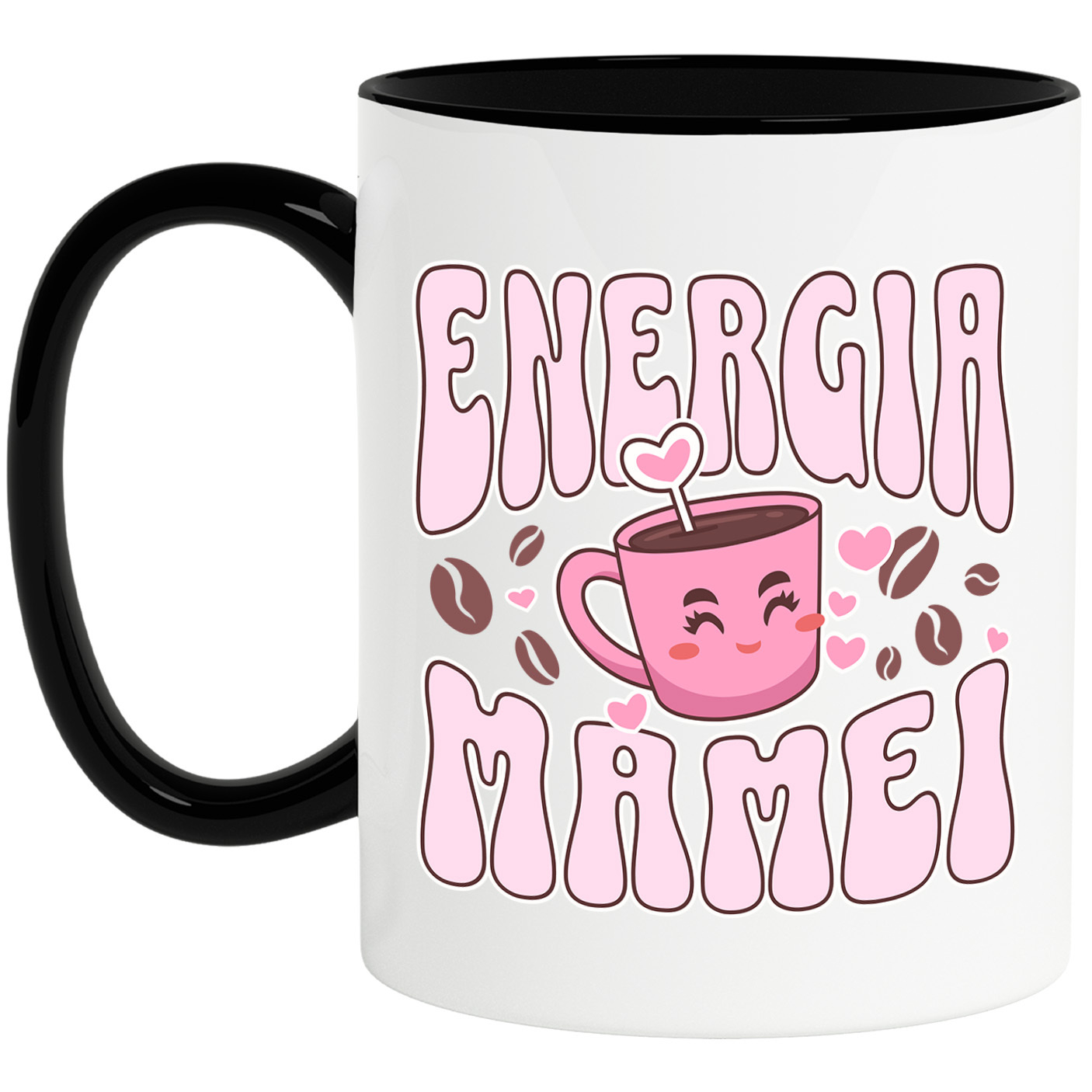 Cana Personalizata cu Cana Personalizata De Cafea Roz, Familie Putere, Energie Dimineata, Zi Perfecta, Ceramica, 330ML, cu Maner Negru