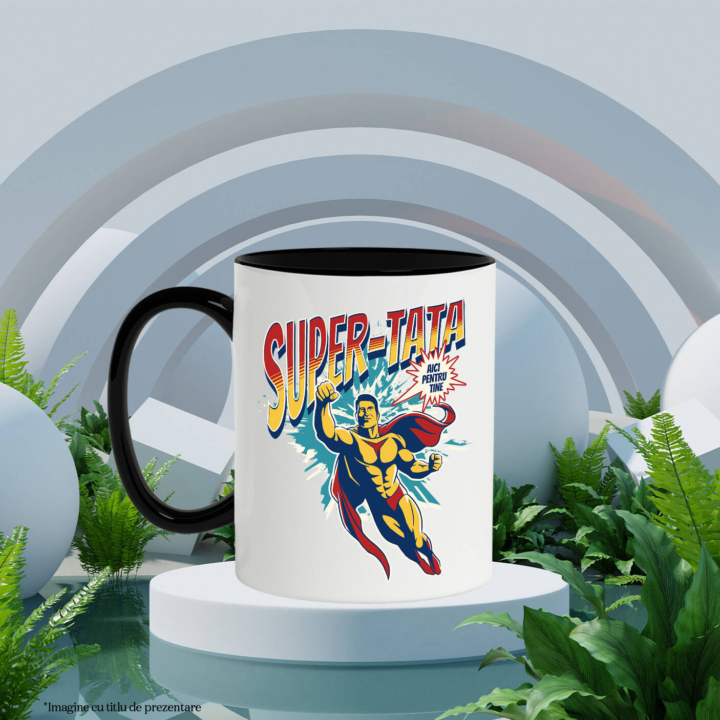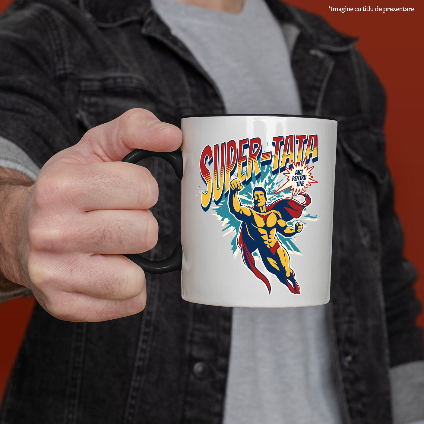 Cana Personalizata cu Super Erou In Zbor Tata Fiu Familie, Desene Animate, Copii, Ceramica, 330ML, cu Maner Negru