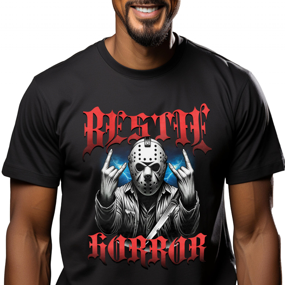 Tricou Barbati cu Barbat Cu masca Infricosator Si Cutit,Horror Hallowen, Sarbatoare, cu imprimeu pe Fata, 100% Bumbac, Negru, L